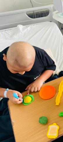 Every day he looks forward to the moment the playroom team arrives. That space brings back his smile, gives him strength, and reminds him that he’s still a child, even in the middle of illness.