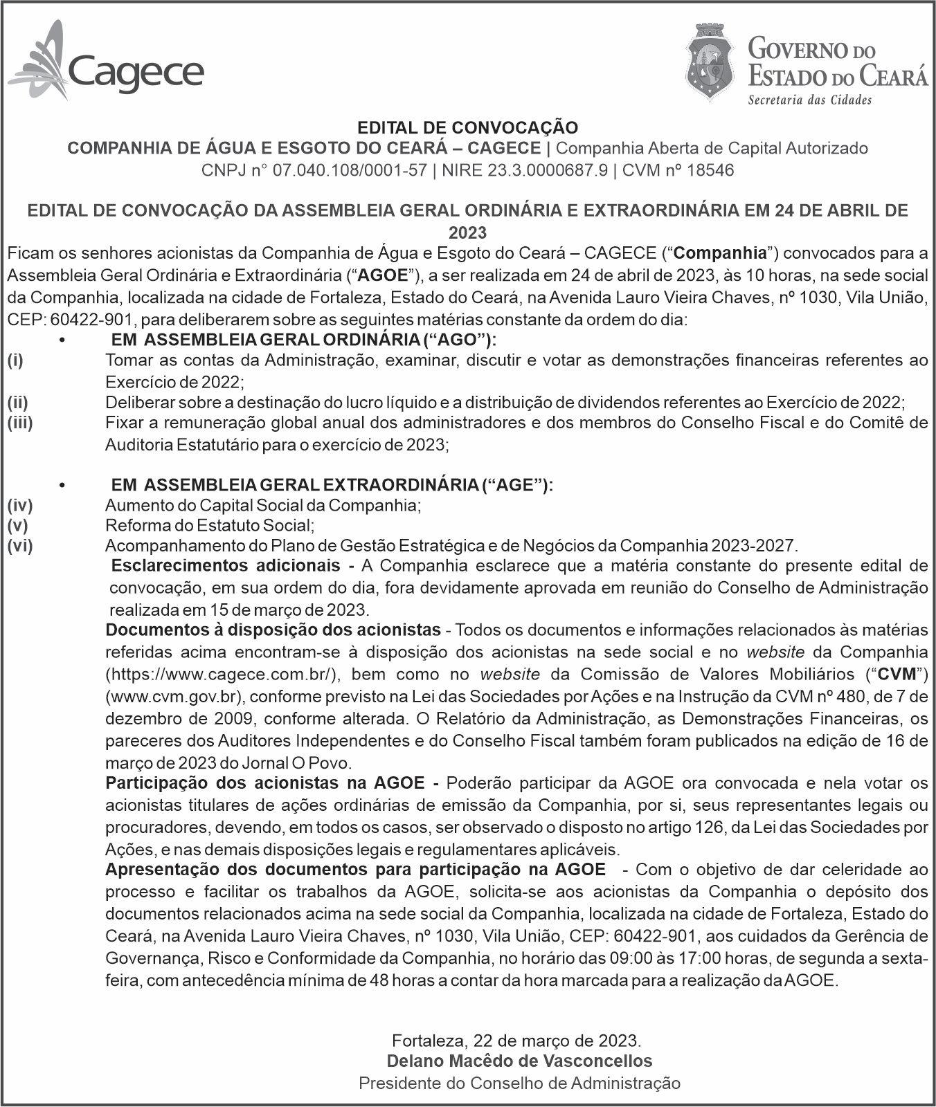 www.opovo.com.br Quinta-feira Fortaleza - Ce ar Á - 23 de Março de 2023 Documento assinado digitalmente conforme MP nº 2.200-2 de 24/08/2001,que institui a Infraestrutura de Chaves Públicas Brasileira - ICP-Brasil.