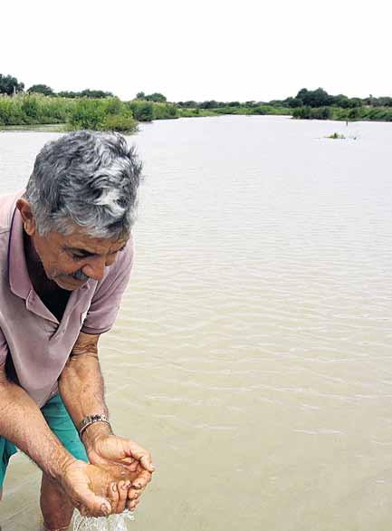 A água do São Francisco está corrente no sertão paraibano, nas cachoeiras de Cangati, em Caraúbas (acima), e no leito do rio Paraíba, em São Domingos do Cariri. Coisa que seu Deda (abaixo), desde menino, quis ver para acreditar