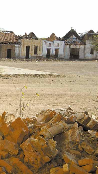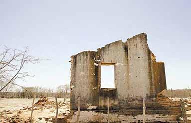 dalam o sino do pescoço em algum lugar próximo. Berram por entre sobras de pasto dos arredores. Época de secura. O prédio que era o cartório desabou. O hotel tem só a parede da frente e as de lado. A casa maior está cerrada, com teias nas venezianas. As pessoas ainda passam por Cococi, mas sempre para outro rumo. Aos distritos vizinhos. Ou são curiosos, como pesquisadores ou jornalistas. “Por que vêm sempre gente aqui para filmar, hein?”, pergunta dona Ana Alves das Neves, 55, moradora restante, ao lado do marido Antônio Pereira Feitosa, 46. Estão lá há três anos. Quando chegaram, ainda havia mais três famílias. Por que abandonaram o Cococi? “Ah, sei não”,