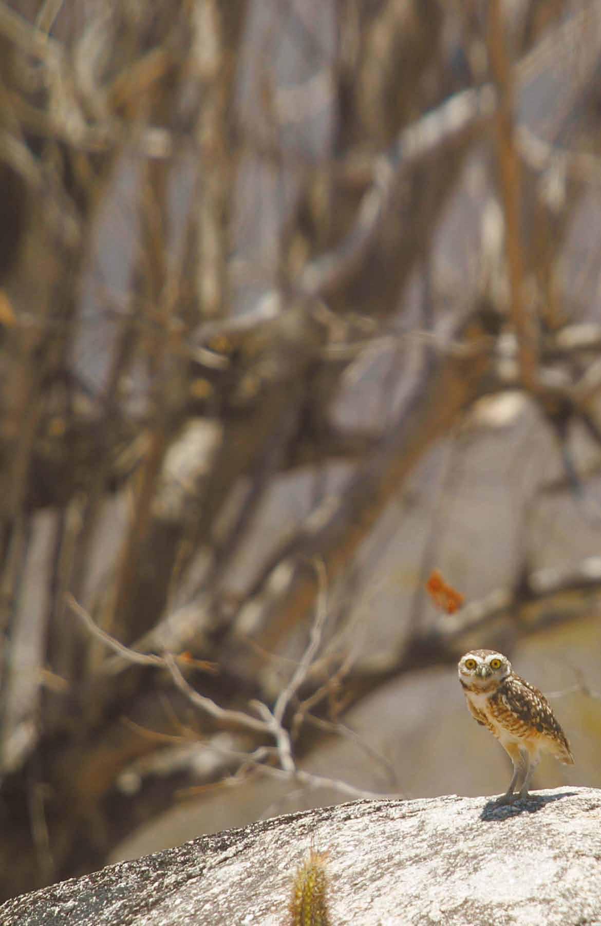 A mata cinza, seca na casca do pau, aparentemente não tem vida. Engano. A caatinga segue seus ciclos, femininos até. Derruba as folhas no instinto de proteger os seus e garantir a recriação. Cobre os solos e, assim, permite que se renovem as gerações dos que andam, voam, se arrastam ou dos que têm outras formas de ir se reciclando. Só não perpetua, porque os que pensam ser inteligentes usam das queimadas e do degradante para se servir. A resposta vem em desertos e a renovação perde o rumo. Mesmo assim, a terra ainda espera, resiste, gesta. Vi desertos e desertados nos sertões do Ceará, mas há tempo para a refazenda.