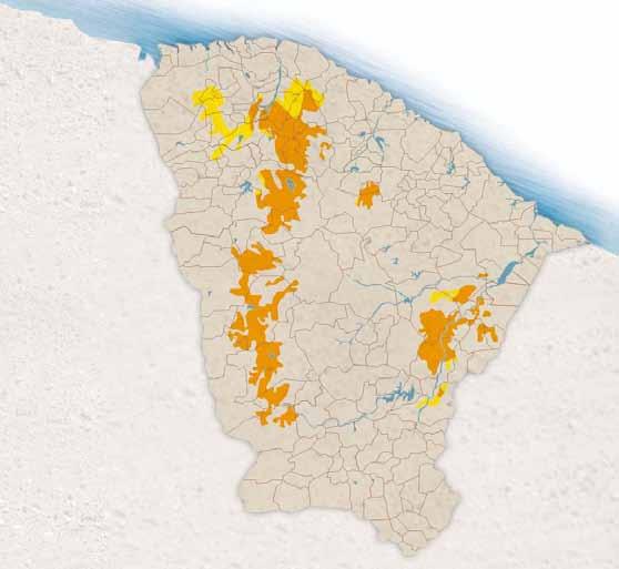 Área comprometida O Ceará possui 90% de seu território no semi-árido, o que levou a Fundação Cearense de Meteorologia e Recursos Hídricos (Funceme) a realizar, em 1994, estudo visando a detectar quais as áreas do Estado que apresentavam sinais evidentes de degradação ambiental. O trabalho, conduzido pelos técnicos Francisco Roberto Bezerra Leite, Sonia Barreto Perdigão de Oliveira e Manoel Messias Saraiva Barreto, indicaram a ocorrência de três áreas que apresentavam-se comprometidas quanto à preservação dos recursos naturais, que são Inhamuns/