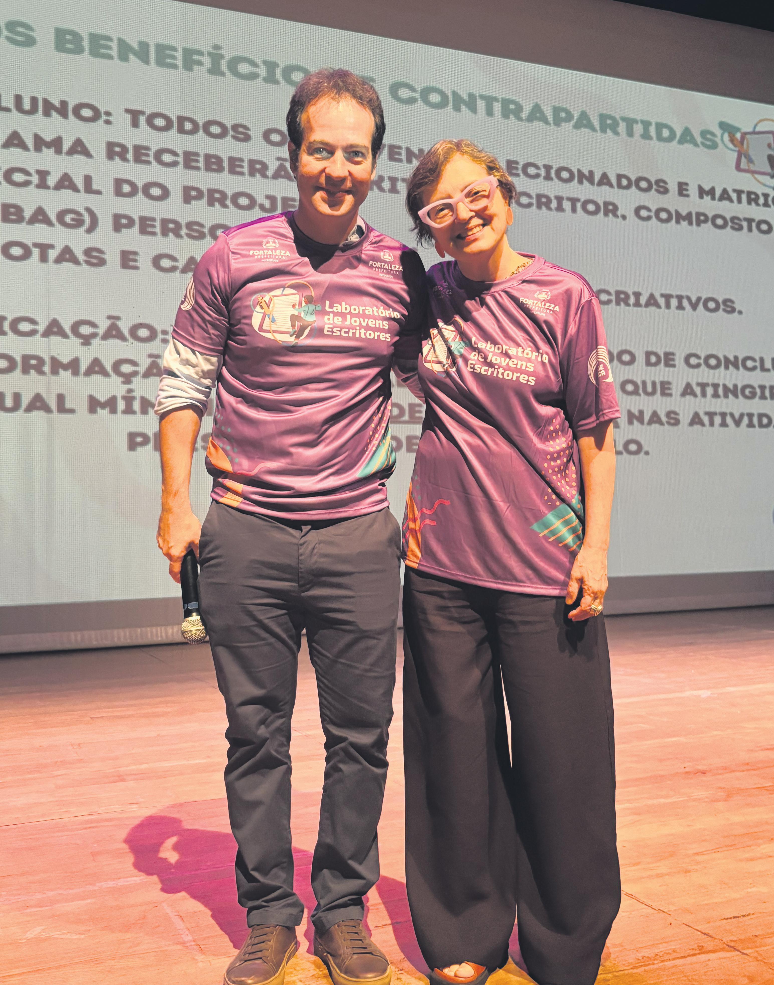 Secretário da Juventude de Fortaleza, Júlio Brizzi, ao lado da coordenadora pedagógica do projeto, Ana Márcia Diógenes