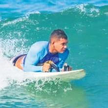 Sou atleta de para-natação e comecei no projeto Felipe A Maré Vida. Quando eu conheci, me proporcionou a melhor coisa do mundo, que foi surfar, e desde esse dia o surf para mim serve como uma fonte de energia, para eu recarregar minha mente. Sou muito grato pela dedicação do Luiz Gustavo em tirar um tempo para proporcionar alegria para a gente. Eu pensei que nunca mais eu ia entrar no mar depois do meu acidente.