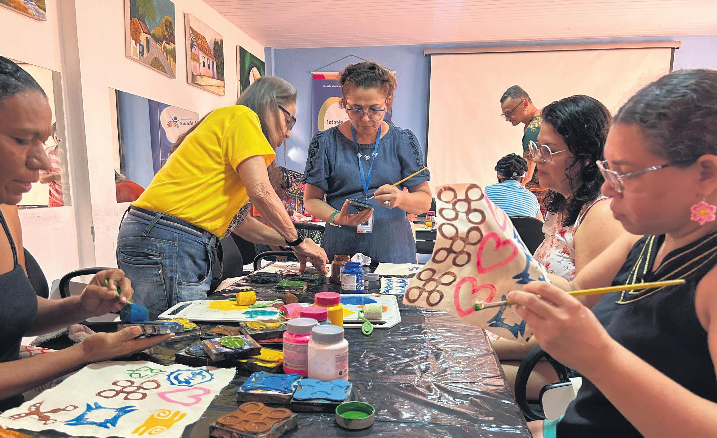 Na foto, uma oficina de estampa africana afro-referenciada (Adinkra), do projeto Expressões de "Raízes: arte e patrimônio imaterial"