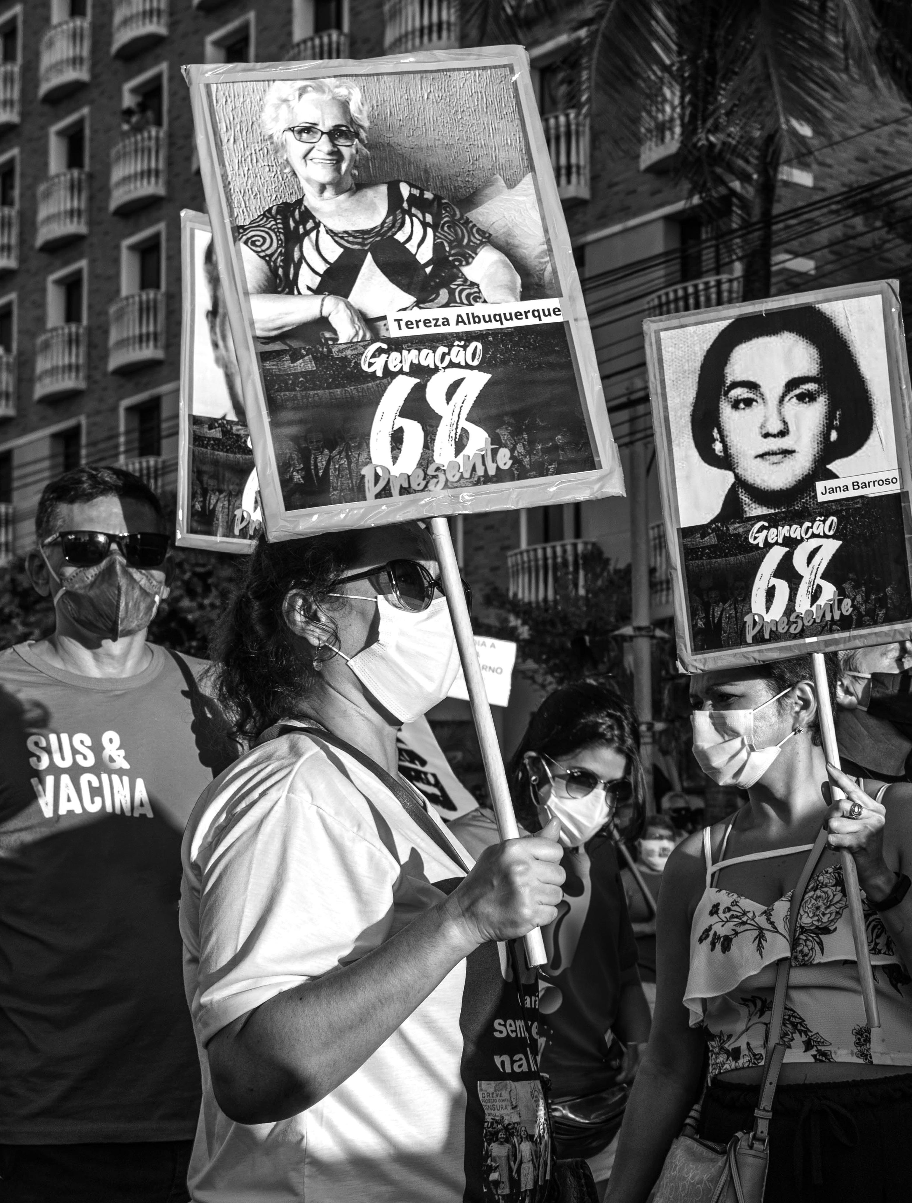 Renata - Jambo é um artista que transita em diversos traços gráficos. Desde linhas mais sutis até colagens em fotos. Ele consegue desenvolver um trabalho com muitas facetas. Cada arte tem uma personalidade única. Além disso, a crítica social é muito marcante no seu material. O trabalho fotográfico da Flávia é muito visceral. É um retrato muito direto do Brasil que vivemos, mas há também poesia nessas mesmas imagens. A fotografia é, igualmente, um ato político. Imagens fotográficas são muitas das referências que temos de grandes eventos da humanidade. O trabalho da Arth3mis é um verdadeiro bordado gráfico. Uma construção em linhas e traços que geram imagens e contextos muito concretos. Existe um minimalismo no traço, mas as referências do trabalho da artista constroem uma narrativa muito direta.