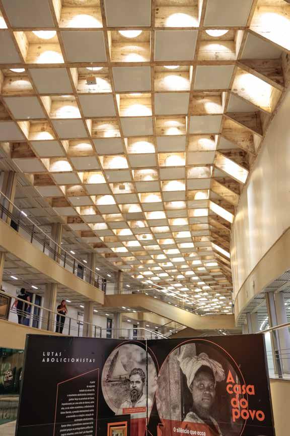 Ramon - O uso de alguns ideogramas adinkra surgiu como elo importante entre as histórias contadas por quem não ocupa os espaços de poder. O processo envolveu pesquisa, conversas e análise de portfólios para equilibrar relevância, potência poética e pluralidade, construindo um panorama gráfico que reflete a história e as dicotomias da “Casa do Povo”.