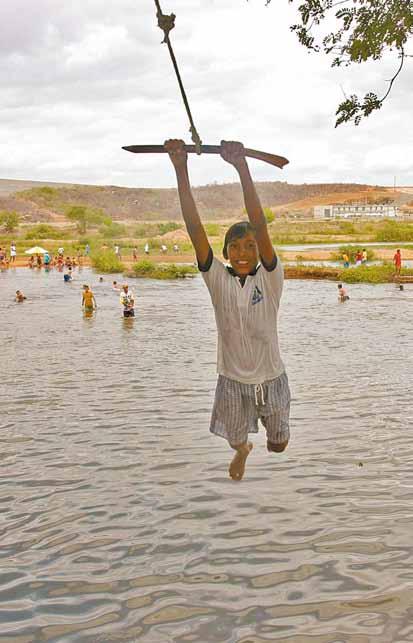 emos mares no semi-árido. O Sertão não é só chão talhado, carcaça de boi e retirados de seus afetos. É possível acreditar, como profetizou Ezequiel (Ez 47, 9-12), que em “qualquer parte aonde chegar o ‘açude’, qualquer ser que por lá se movimente conservará a vida. Haverá grande quantidade de peixes, pois aonde o ‘açude’ chega traz saúde, e tudo que entra em contato com ele conservará a vida”. Essa idéia da água como sinal de vida é ancestral. É presente e futurista também. Nas aventura por outros planetas, a busca pela vida começa pela busca de sinal da água. Temos mares no sertão do Ceará e ainda titubeamos com a estiagem. Castanhão, Orós, Banabuiú, Araras, Pedras Brancas, Pentecoste e Pacoti. Os sete maiores que, juntos, somam 13.232.670.000 m³ de capacidade - o equivalente a 74,3% da reserva hídrica do Estado. Ainda não aprendemos a conviver no semi-árido e seguimos a política da emergência e dos carros-pipas em 102 municípios. E porque sobre suas margens e extensões não crescem, mais ou ainda, árvores frutíferas das mais variadas espécies, cujas folhas não murcharão e cujos frutos nunca acabarão? Pé na estrada, os repórteres Cláudio Ribeiro, Demitri Túlio, Luiz Henrique e Rafael Luis, os repórteres-fotográficos Fco. Fontenele e Sebastião Bisneto e mais o motorista Valdir Gomes percorreram o semi-árido cearense para procurar caminhos e descaminhos. Mais de cinco mil quilômetros de carro, de barco e a pé.