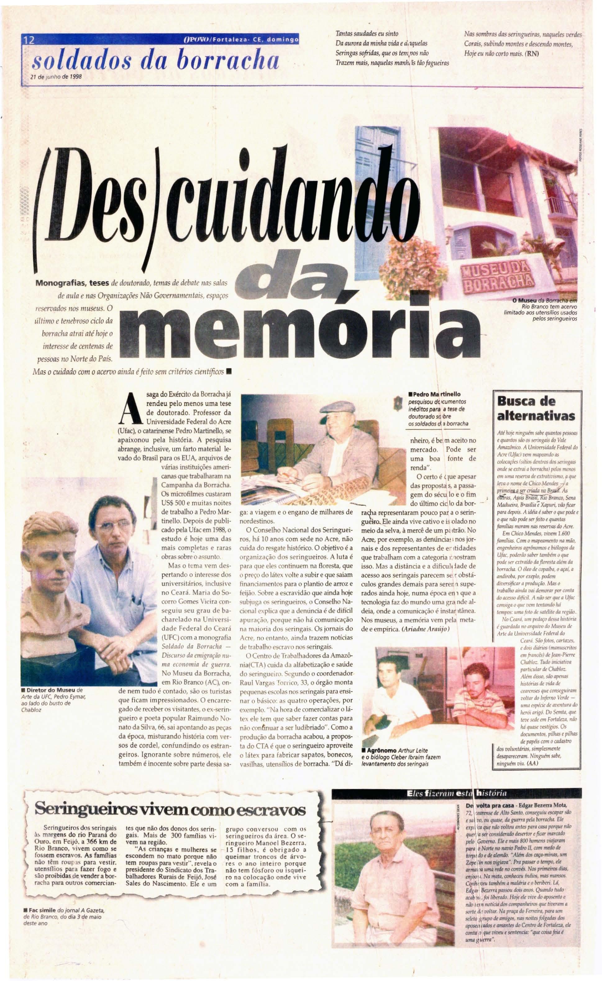 Às m arg e ns do r io Juru.i ( AC) u m se ringal te m o nomePortal eza Mas nomuni cipio Cl1U.{'iro d o'Sul.a nolí ei.l é d e de zenas d elor alida de s cha mada s d e Cea ra Rio ( :ra ndt'do N o r te Parafba.Uma m n eirad os sol dado s d abo rracha Sf se ntirem e m casa Po r causa d isso, losé Pereira d a Silva. 64, pode dize r que mo ra em " Fortaleza", a Cdpill ,I onde nas-