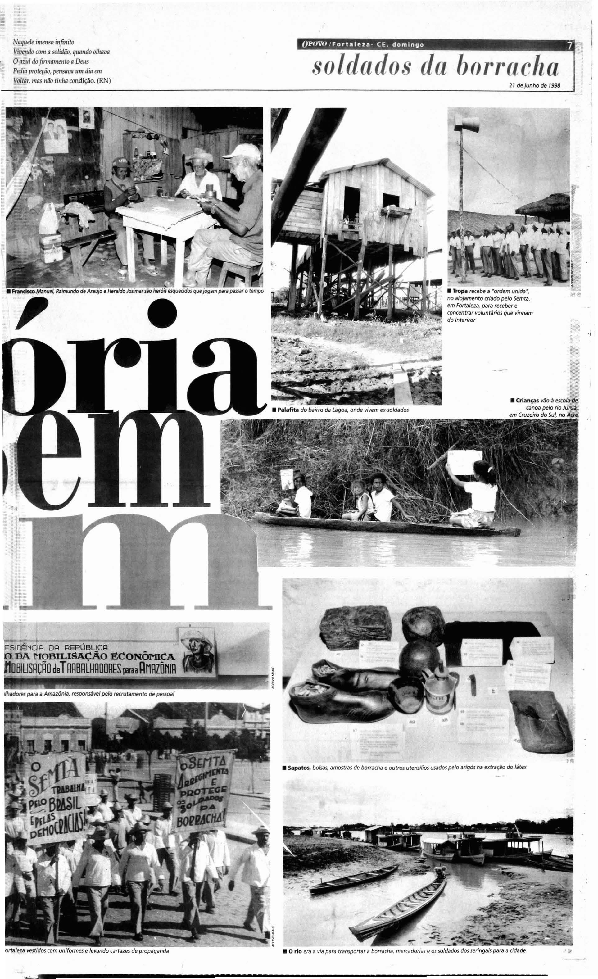 utr aziap ara a m ulher faze r aco mida p ros m enin os ". Naviz inha nça ,o u tro soldado d a borracha, o João B-a list.l da Sih'a, 73 diz a lime nta r um sonh o : co nhece r ave rdadei r a cidade Fortaleza. " Sou me tido e peruan o Vou o nde q uero".