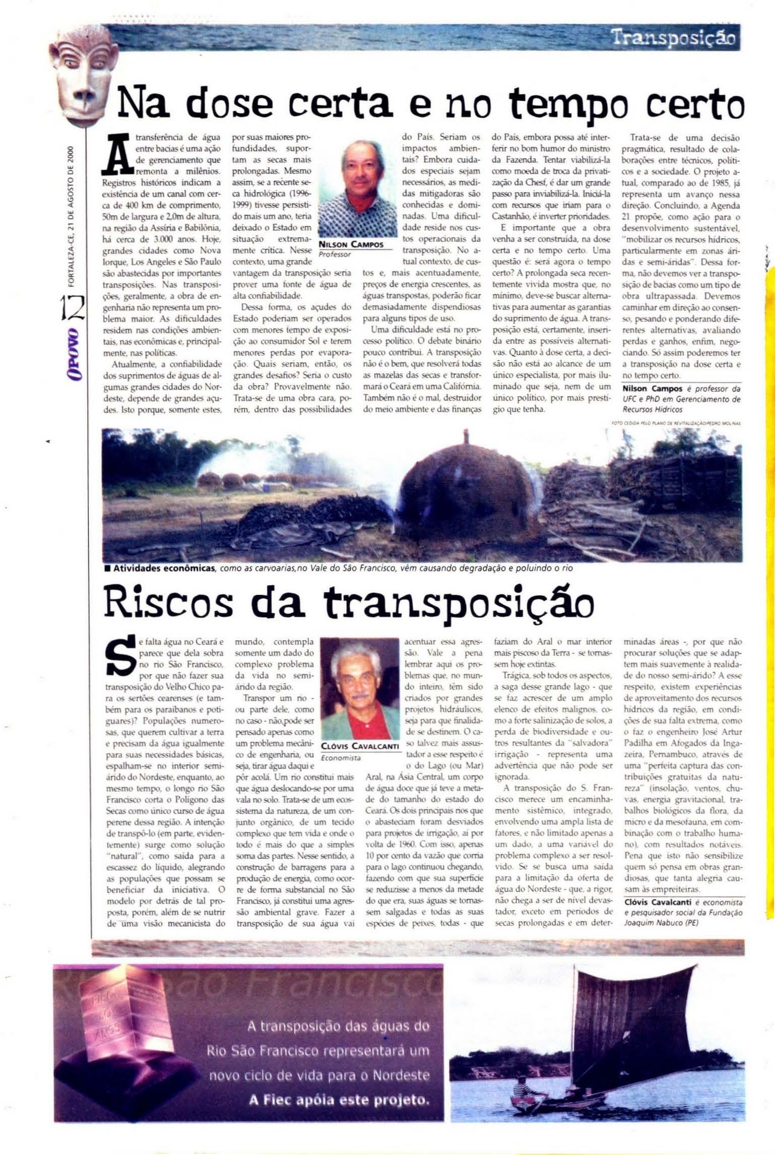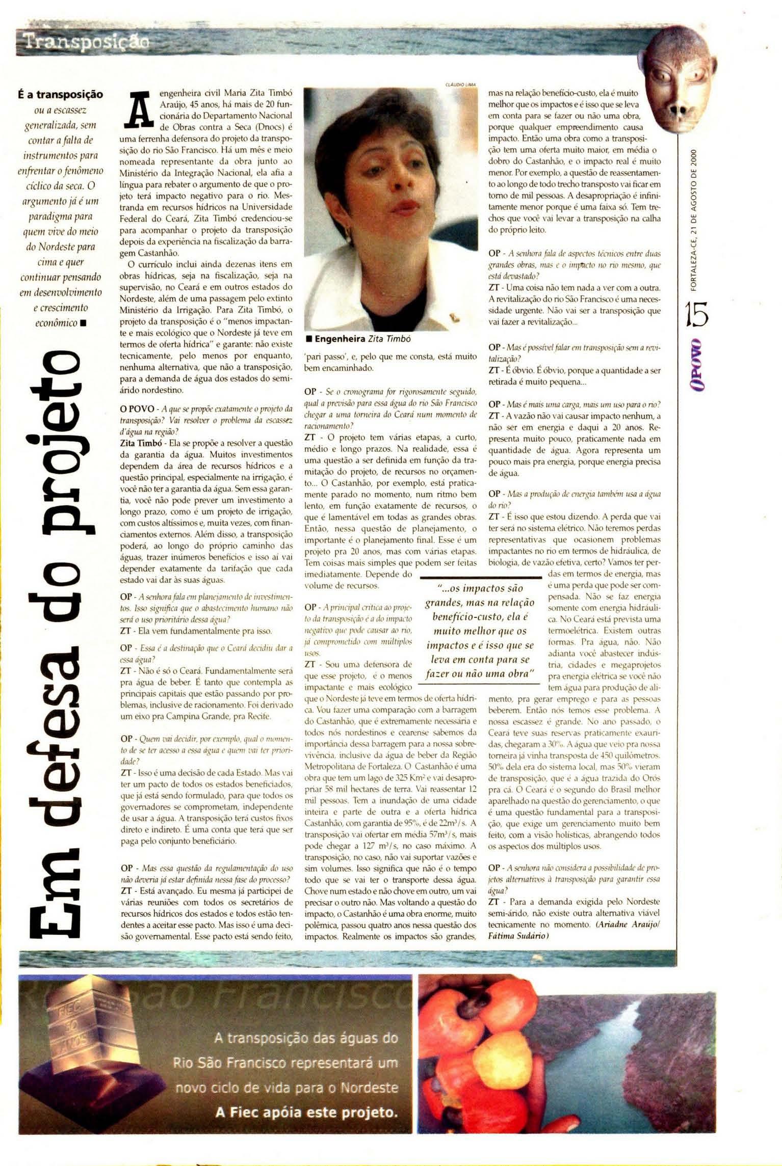 a currí culo in clui J mdol dezenas i te ns em obras h ídricas, St'j a na fiscahzaç âo. 54.1,l nol s upervisão. no C" ol rá e e m out ros l'SIJd<l5 do Nord es te, alé m d e u ma pelo e vbn t o Ministc no d a lrri ga ç âo. r ara Zi!J Timbó o p rojeto d a t rans pcsiç âo é o "me nos Imp,Kt m te e mJi s ccol <ig ilú qu o No rdeste i.í teve em t rmos dl' o tertol hídric.l'" e g olra nl : não l;"istc It:'l."T1I CJm l;' nle , pelo m nos por n q uJn lo, nl'nhum a J ht'm ol ti\'a q ue n.lO a p.l ra a d l'mJnda d I.-' .igu J d os t'S tados d o !'I.' ml· .irid o nOml'5 tino,