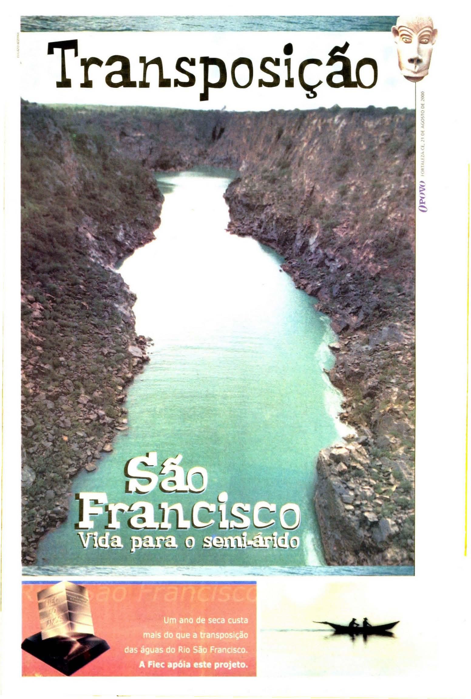 f".U segu nd o. Tod o o va le n o e n tan to, sorna u rna á re,l d i' 641 1 m il q uitô m ct ro, q ua drad os - eq u ivalente 11 superfioc d a França e Portug aljuntos. Po r lig.ar u rna 11 o utra, g lIlhou frase de e feito : rio da u n id ade na..it:tnal. Mais d o que n unca o apeli do pd l\'Ct' cair ro mo uma 11,1 \ '.11 A da pta do e d e ( J r.a nova. vona à ("("Jl,I o m ti go p rojo!t o d e d.a s d o 5.k! Franc1 !oC'O - ror o rd em de Dom Pedro IL entre 1852 e 18 504 o engenheiro Henri que H alfeld fez o p nmt' lro es tu do técucc sobre o ass unttl, A cen t ral li ain da a mesma traze rd i'on de tem le var pa ra o nde iJtlJ Em époc a s d e St.'C o rio St.' riJ J d i' urna ( dixJ d 'águ ,l p J ra ci nc o Cl' l r.i, Rio G rande do No rte, PiJ ui PJ rJlr.J t' Pem Am [.u(o, A d nl1 t' nl.a nlo , n .lo SI' .I J S'