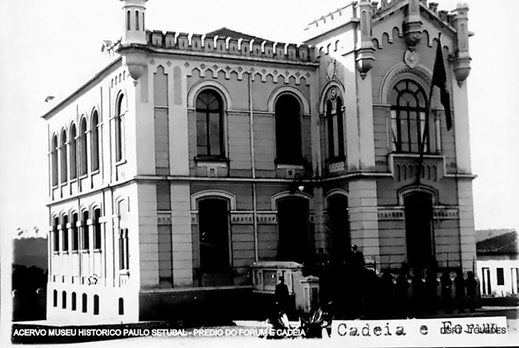 Nesse local, em 1920, é construído um prédio, naquele momento situado na então praça “Antônio Prado”, que passou posteriormente a ser a praça Manoel Guedes. Neste local foi reali zada a construção de um edifício que seria a cadeia e o fórum. Segundo o registro “Tatuhy Através da História”, o prédio tem “construção recente, sob o governo do senhor Dr. Altino Arantes, sendo secretário da Agricul tura o senhor Doutor Cândido Motta, que a mandou fazer. Planta elegante, em sobrado, prisões bem arejadas e amplas, vasta sala de júri e audiências e gabinetes diversos. Ocupa lugar