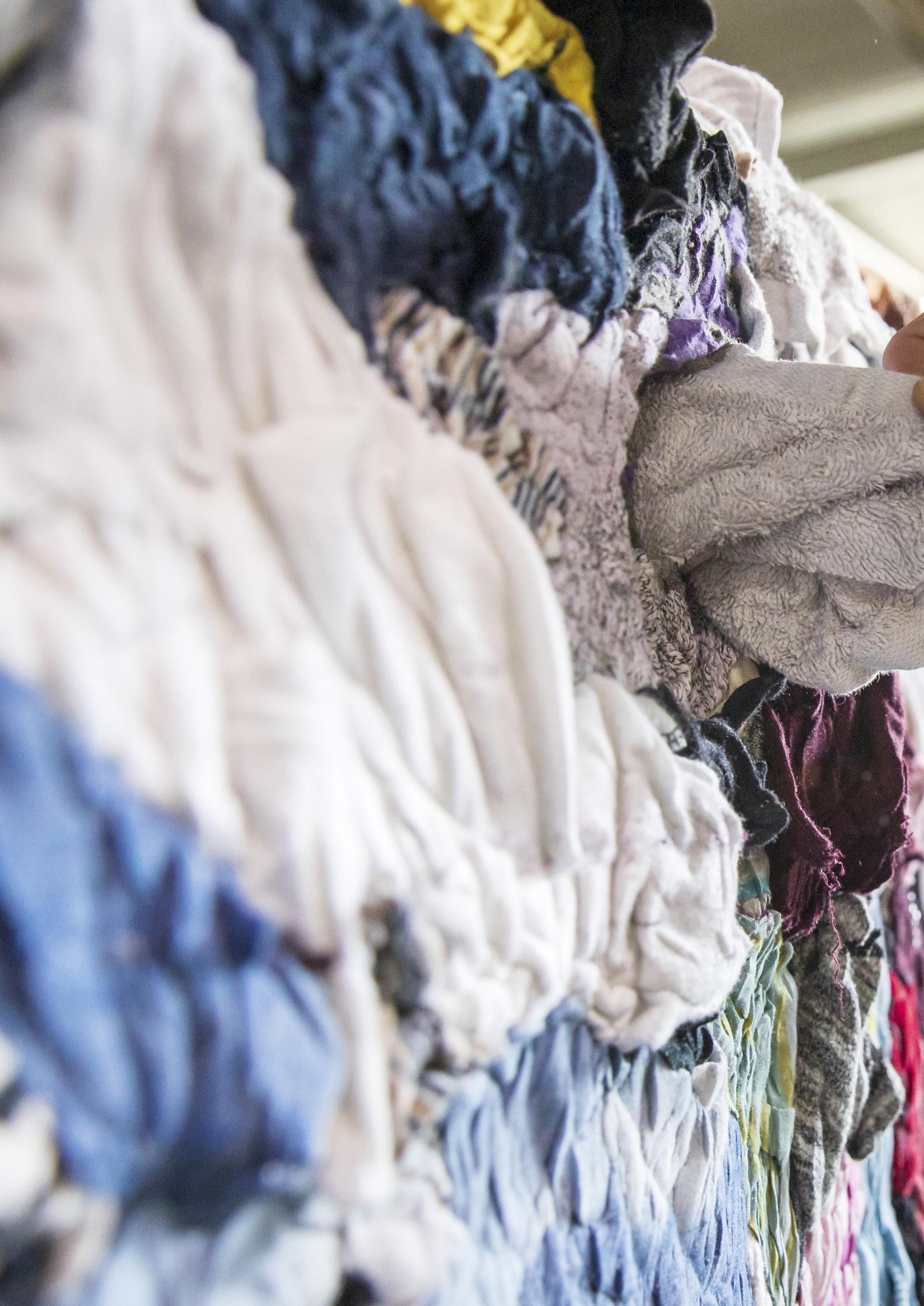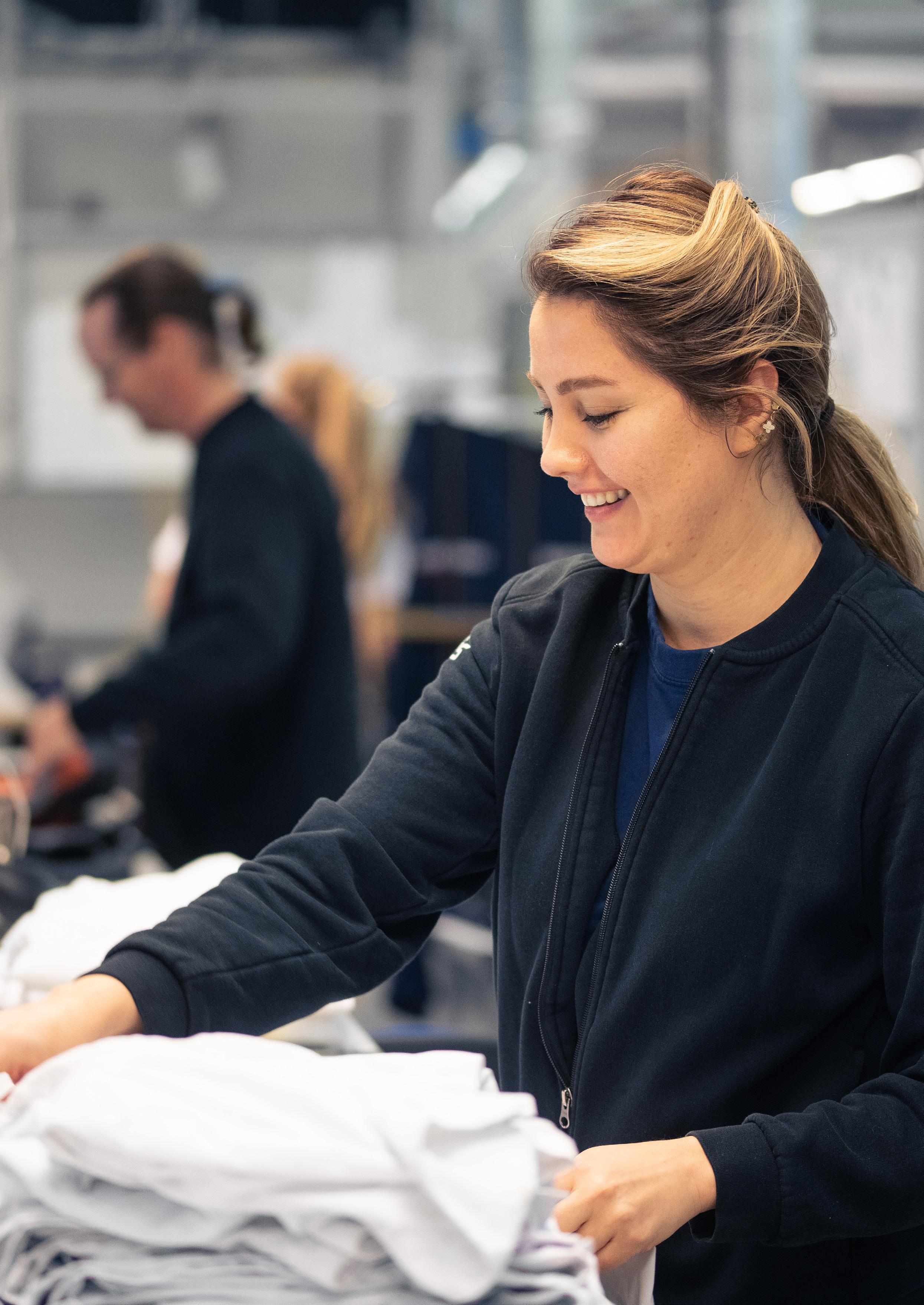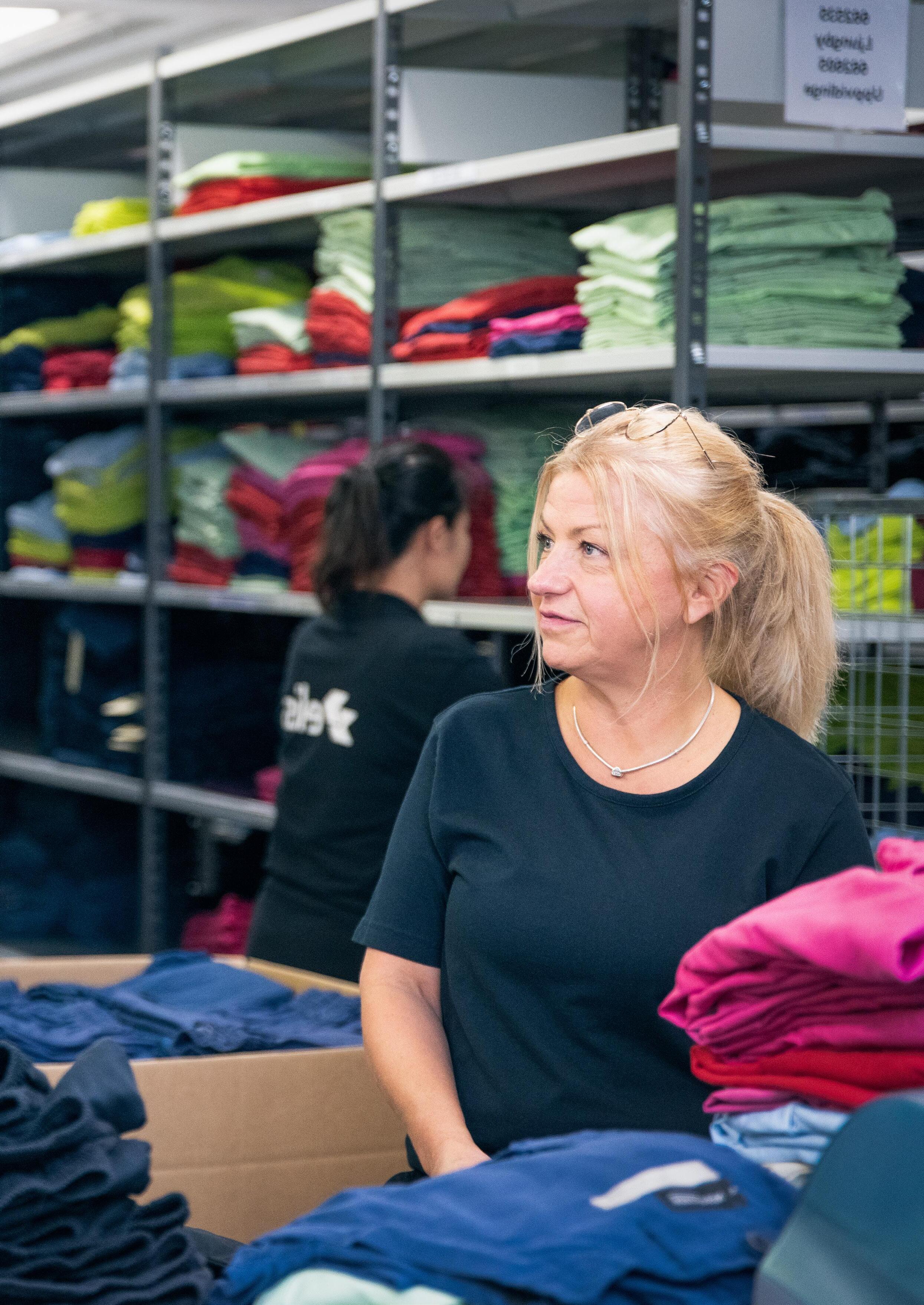 I VÅRT INTERNA resurslager, Re:Use, sparas textilier som snabbt kan återbrukas av nya kunder. När textilierna till sist inte längre uppfyller våra kvalitetskrav ger vi dem nytt liv genom att låta dem gå vidare till välgörenhet, utvecklingsprojekt, återbruk eller textilåtervinning. Här pågår många spännande utvecklingsprojekt kring både materialåtervinning och upcycling till andra typer av plagg och textilprodukter. Som ett allra sista alternativ skickas uttjänt textil till energiutvinning. Till år 2030 är vårt mål att inga av vår kasserade textilier ska gå till förbränning.