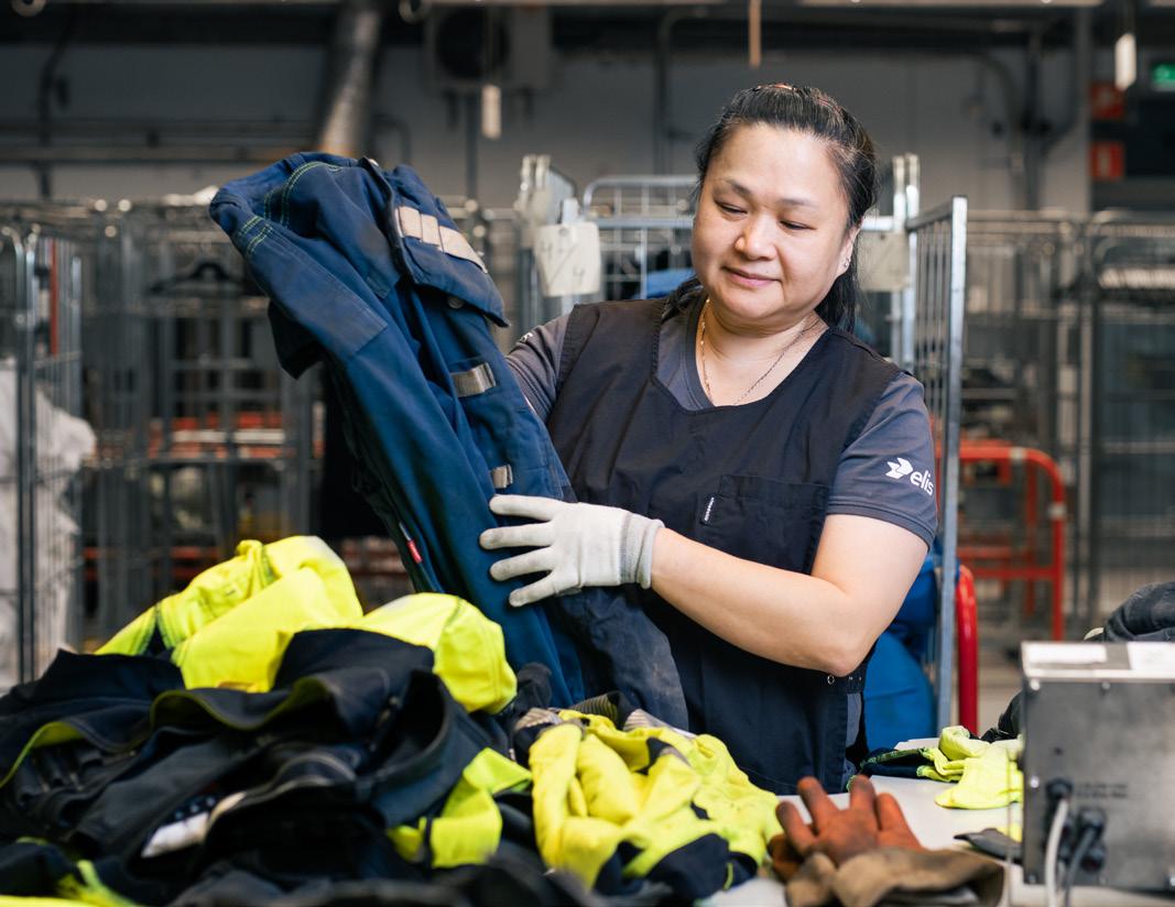 Fokus för året har legat på textil , där vi sett störst utvecklingspotential. I synnerhet när det gäller att se textilavfall för vad det är: en värdefull resurs! Ny mark för många – även för oss på Elis. Vi har länge varit duktiga på ’traditionellt återbruk’, och kan via vårt Re:Uselager snabbt få in använda textilier i kretsloppet till nya kunder. Att nu investera för att öka andelen hållbar textil** är en viktig del av vår strategi. Till år 2030 ska