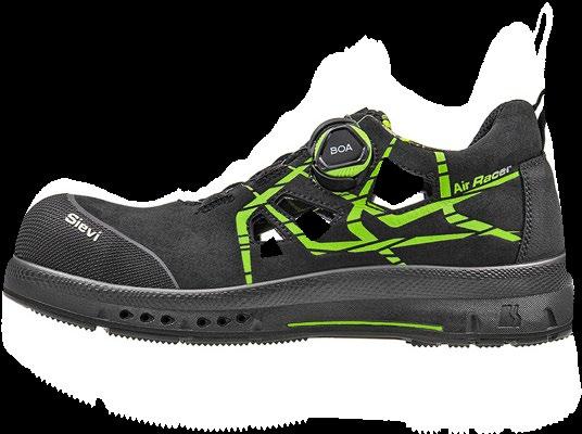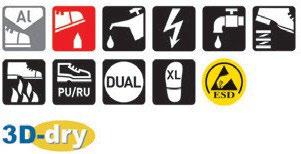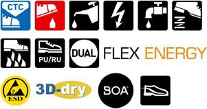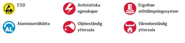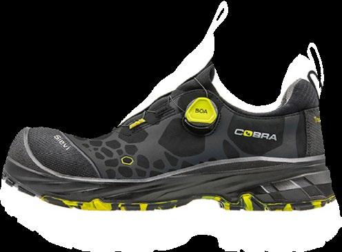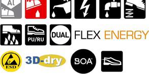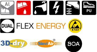 Sko med tåskydd av aluminium och spiktrampskydd av stål. Ovandelen i skinn skyddas av en tåhätta. Sulan är tillverkad av gummi som håller för hårt slitage och tål värme upp till 300 ºC.