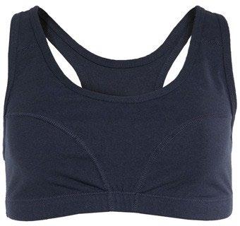 Mjuk, metallfri och inherent flamskyddad sport-bh med 20% återvunnen bomull. Breda axelband för maximalt stöd. Resår nederkant.