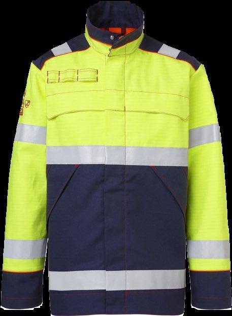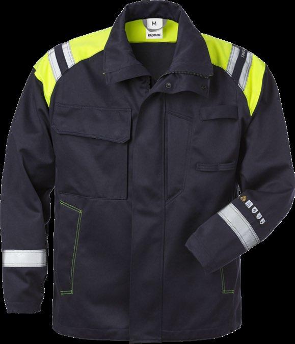 MATERIAL 60% modakryl, 38% bomull, 2% antistatisk fiber med inherent flamskydd. 255 g/m². EN 61482-1-2 BOX TEST, EN 1149-5, ISO 11612 A1, B1, C1, Öko-Tex standard 100. Foto: Fristads