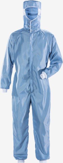 Overall med huva som är anpassad för renrum och kontrollerade miljöer. Tillverkad av ett tekniskt avancerat material som fungerar som ett filter och skyddar omgivningen. ISO klass 3.