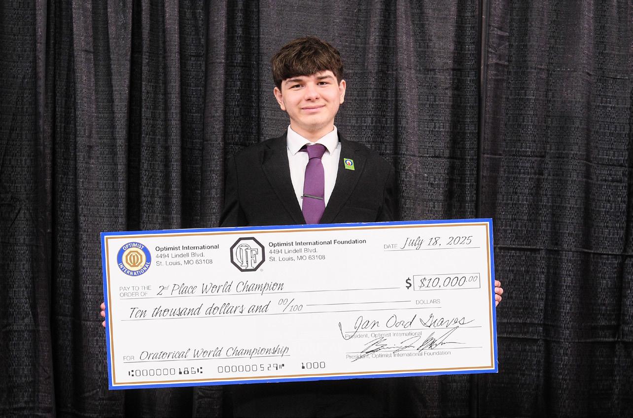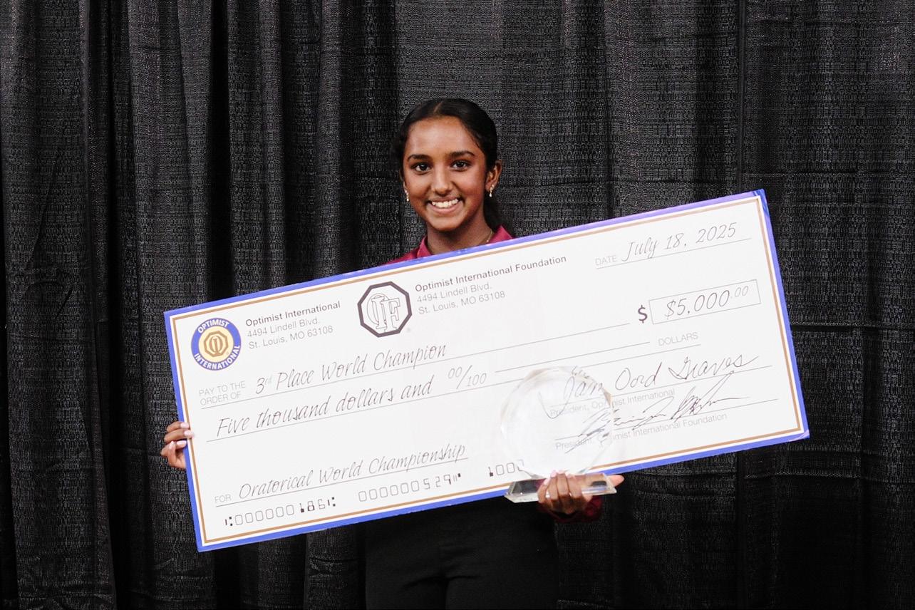 The 2025 Oratorical World Championships (OWC) once again demonstrated the power of young voices to inspire change, promote optimism, and build global connections. Supported by the generous donors of the Optimist International Foundation and the Canadian Children’s Optimist Foundation, this year’s competition gave students a meaningful platform to share their perspectives on the theme, “How Optimism Has Guided Me Through Trying Times.”
