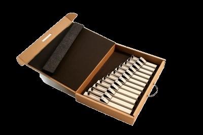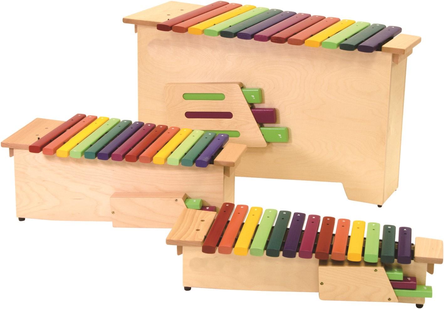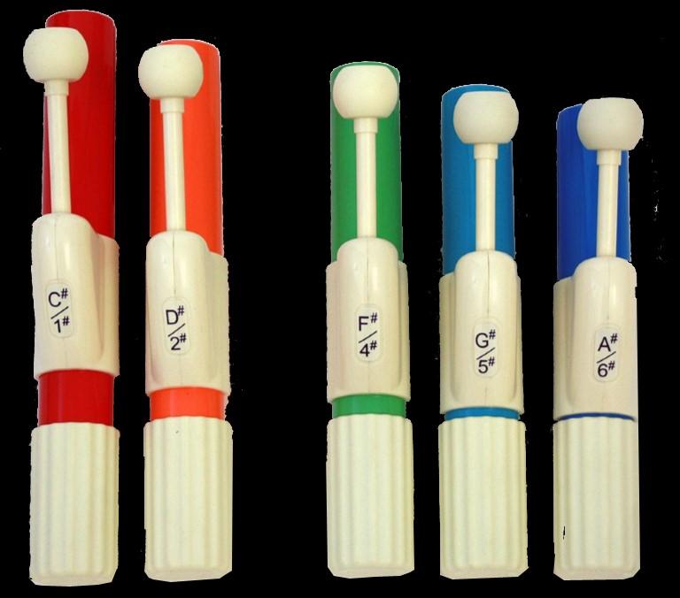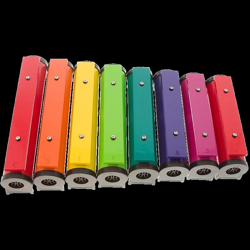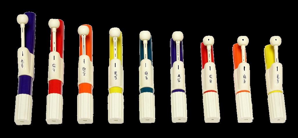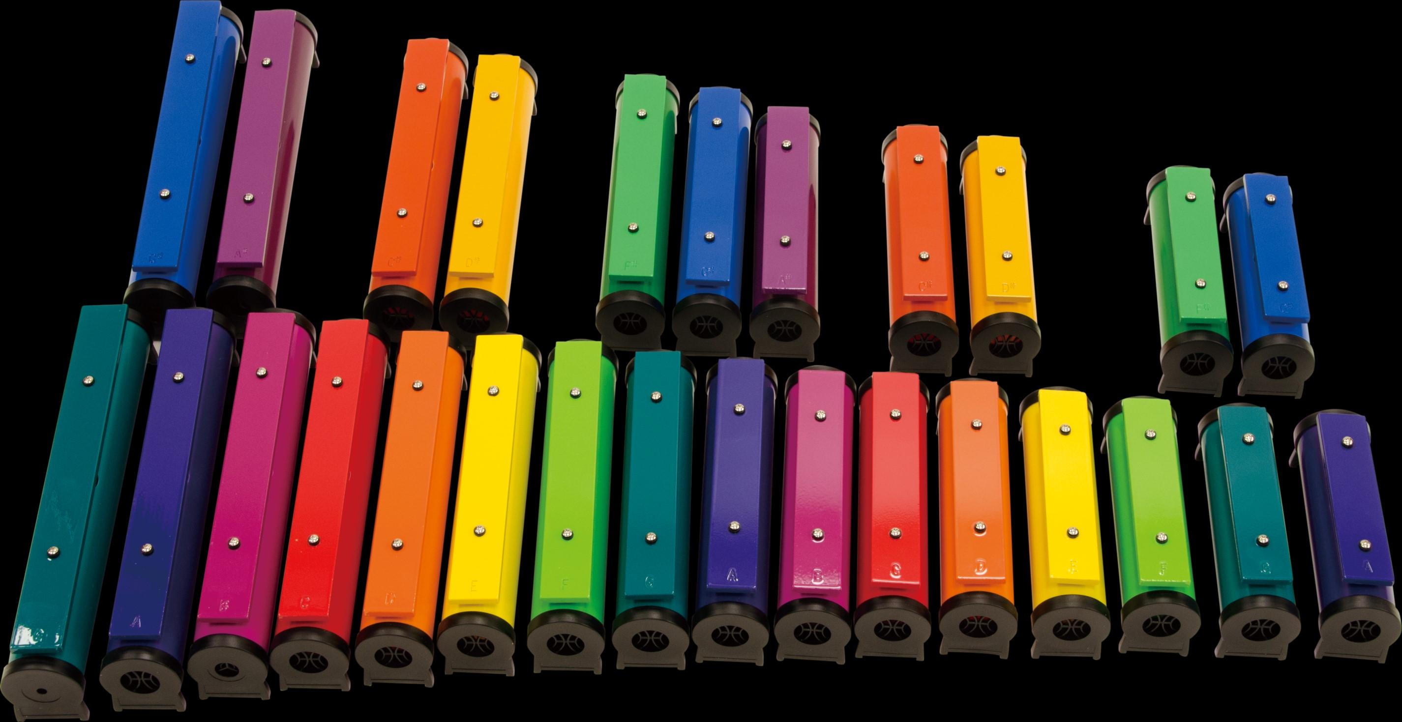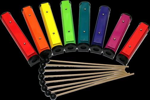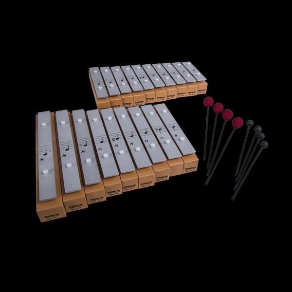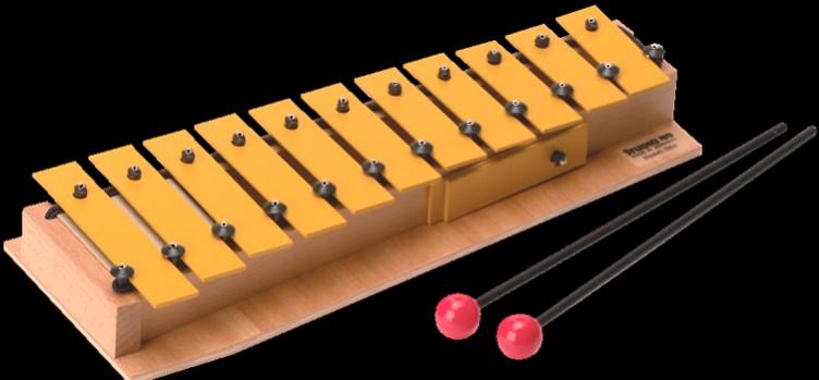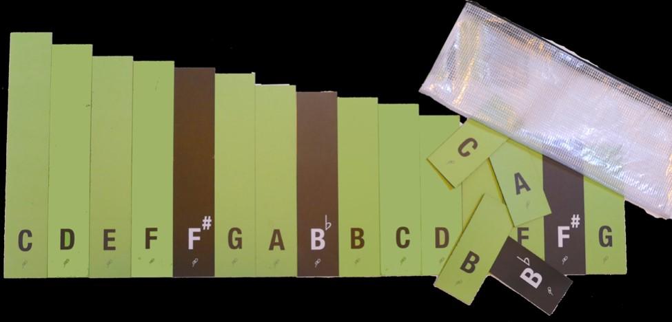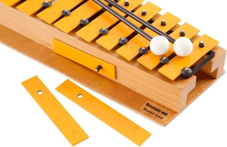STUDIO 49’s special barseating prevents the interchangeable bars from easily falling out, even when the instrument is turned upside down. All diatonic glockenspiels include F#’s and Bb’s
