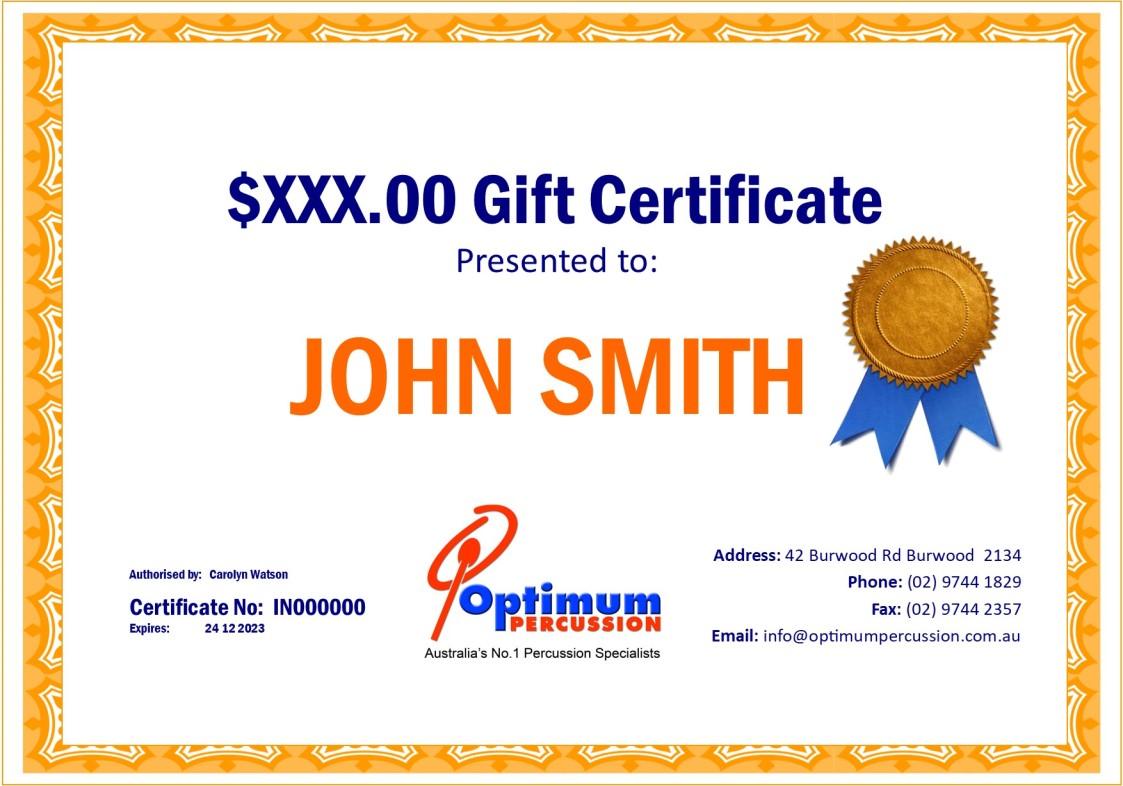 Optimum Gift Cards are available and can be personalised for the recipient for any amount requested.