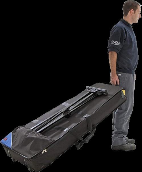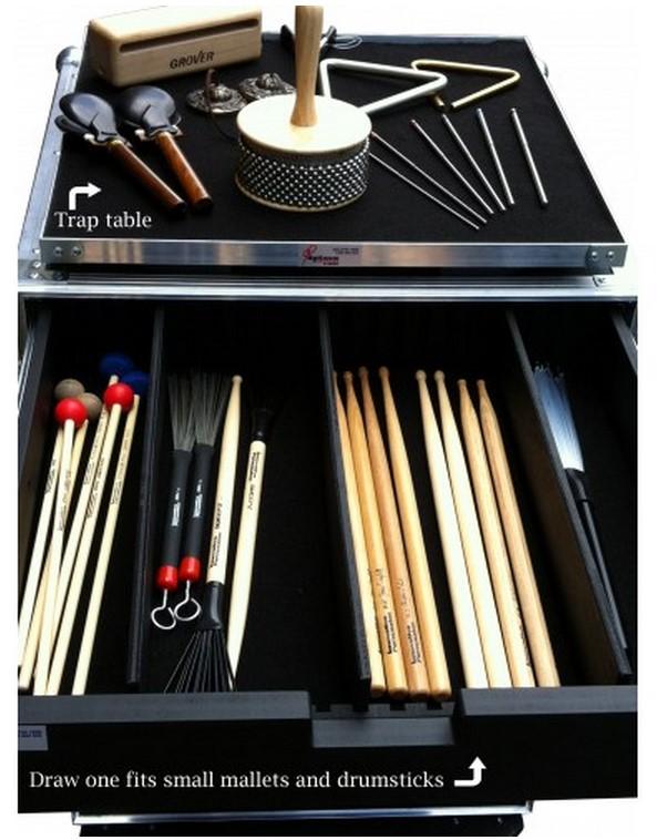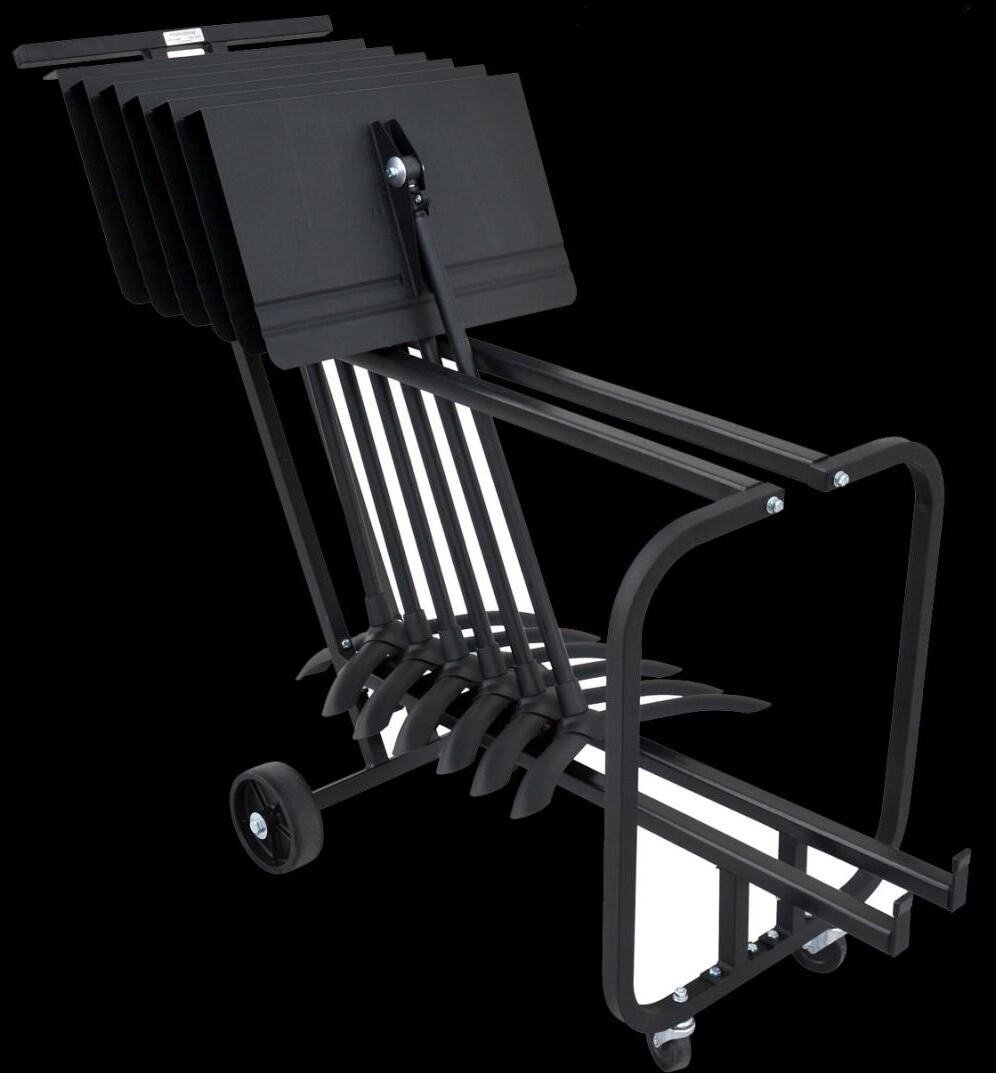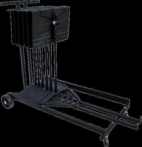 Unique storage cart takes up virtually no floor space Can hold up to 24 Jazz Stands Fits through doors and is easy to move