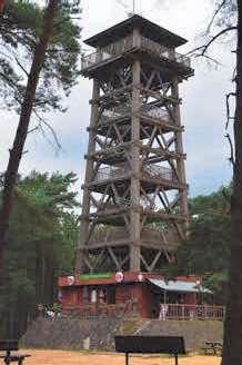 TOERISTENTOREN“DePapekelders”werdin1985gebouwdop eenzandduin,40meterbovende zeespiegel.Dezehoutenconstructievan24meterhoogkwaminde plaatsvaneeneersteexemplaaruit 1958,datin1983afgebrokenwerd. Bijhelderweergenietmenvanop