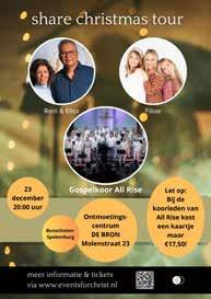 Vocal Group Filiae en duo Reni & Elisa trekken in december met een kersttour door Nederland. Daarbij werken ze samen met diverse koren. Elke avond is een ander gospelkoor uit de omgeving van de partij. Zo brengen ze de kerstboodschap dichtbij. Tussen 12 en 23 december vinden de zes ‘Share’ concerten verspreid over het land plaats, met kerstliederen om te luisteren en mee te zingen.