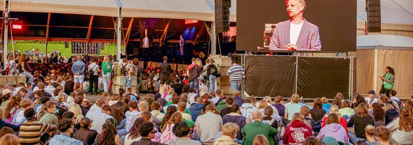 Of zoals de teamleider van het vertaalteam, die vertelde hoe zij in de opbouwweek meehelpt in het elektrateam. Kabels trekken, stroompunten testen. “Elk jaar help ik mee. We zijn een team. En we doen het voor God.” Of de teamleider van het fina-team. Na decennia van trouwe dienst nam hij afscheid. “Vroeger werden kisten vol contant geld onder codenaam over het terrein vervoerd. ‘Er komt een kist aardappels aan,’ zeiden we dan. Na een collecte waren we soms met veertig mensen twee uur aan het tellen. Nu is er nauwelijks meer contant geld voorhanden. Alles gaat digitaal. Het gaat nu zo goed, dat ik het met een gerust hart kan overdragen.”