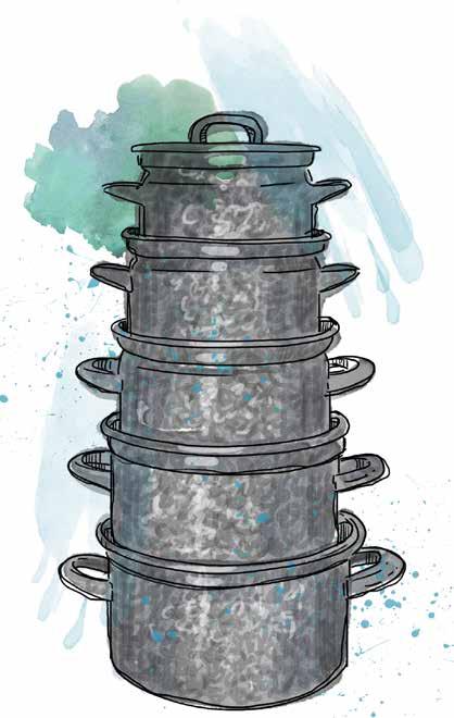 Het zijn kookherinneringen die bijblij ven. Of mijn vader, geboren en getogen in Indië, net als oom Dee goed kon koken, weet ik niet. Hij nam de kuierlatten toen ik drie jaar was. Mijn stiefvader daarentegen was een ster in de Indische keuken. Zijn wieg stond op Sumatra waar hij opgroeide en van zijn Pindah moeder leerde koken. Voor hem was het heel gewoon om ‘s och tends met nasigoreng te ontbijten en voor de lunch de Indische restjes van de dag daarvoor op te peuzelen.