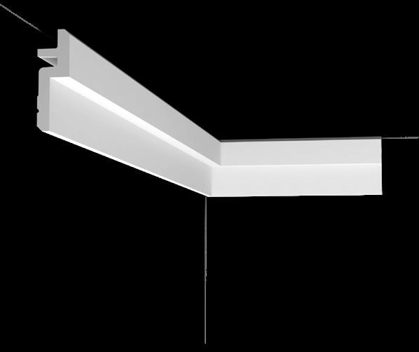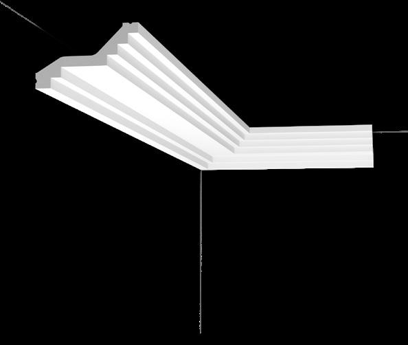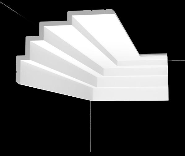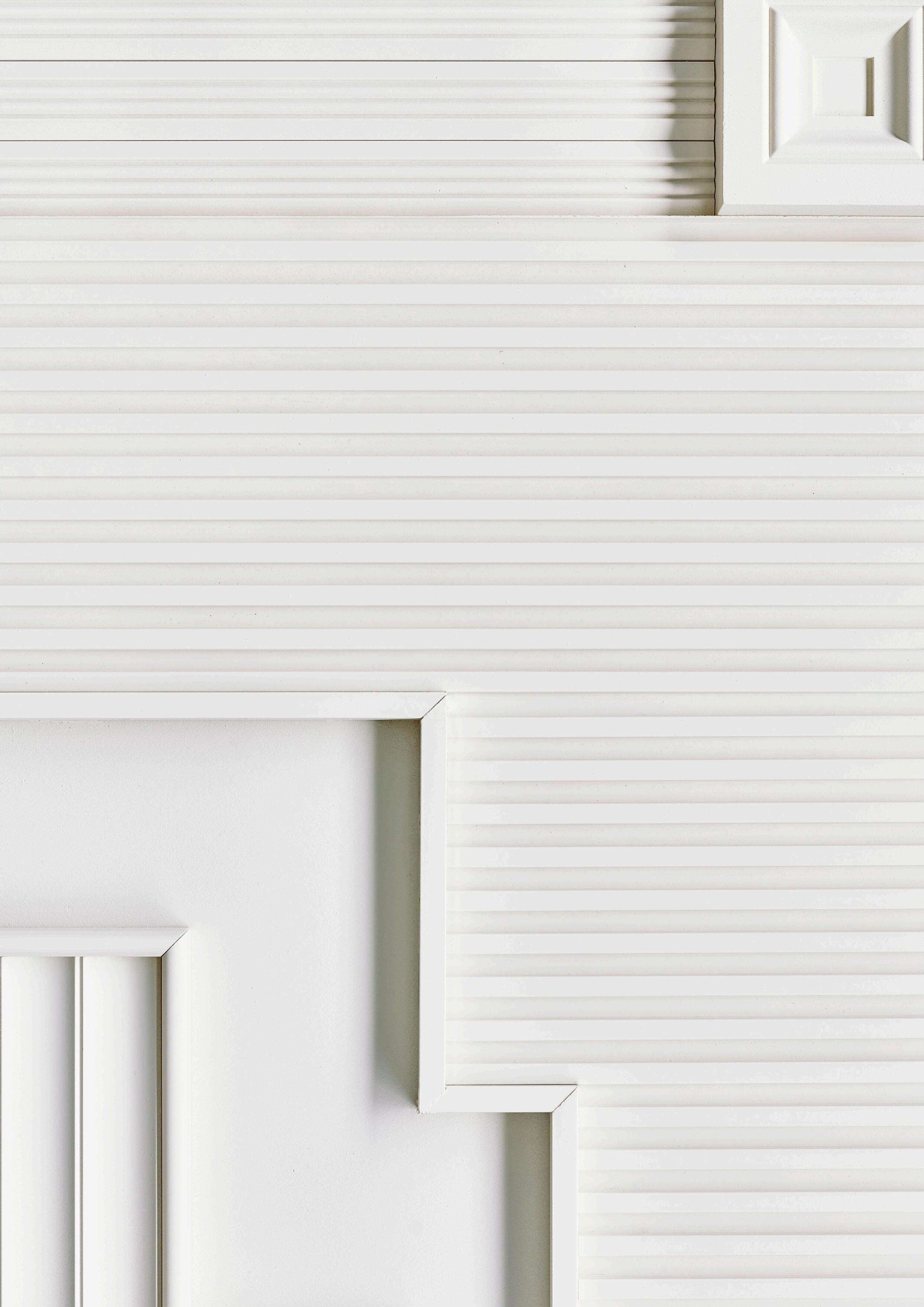PL Zaokrąglone kształty i łuki Łuki i zaokrąglone formy łagodzą czyste linie stylu art déco. Wnoszą one ruch i ciepło do przestrzeni. Stanowią również naturalną część sufitów, drzwi i detali ściennych. Dzięki panelowi ściennemu 3D W212 Valley Loop można wprowadzić tę krzywiznę na ścianę. Gzyms Infinity oferuje delikatne, płynne przejście między ścianą a sufitem. W połączeniu z P9900 tworzy to charakterystyczny styl art déco.