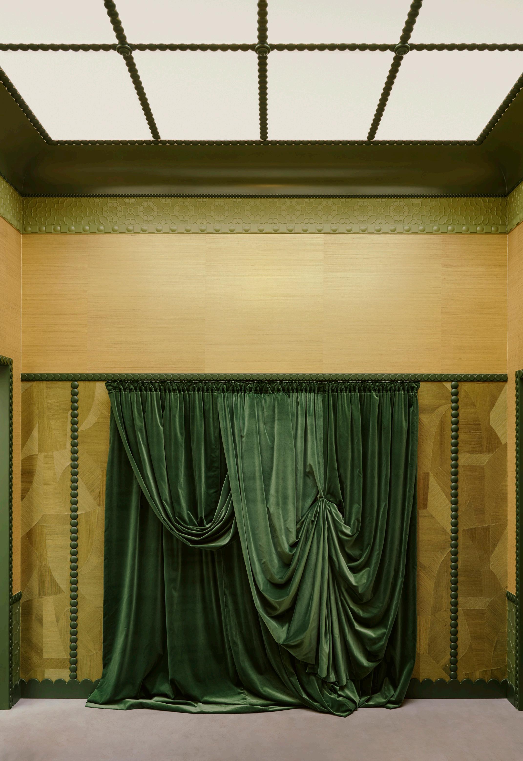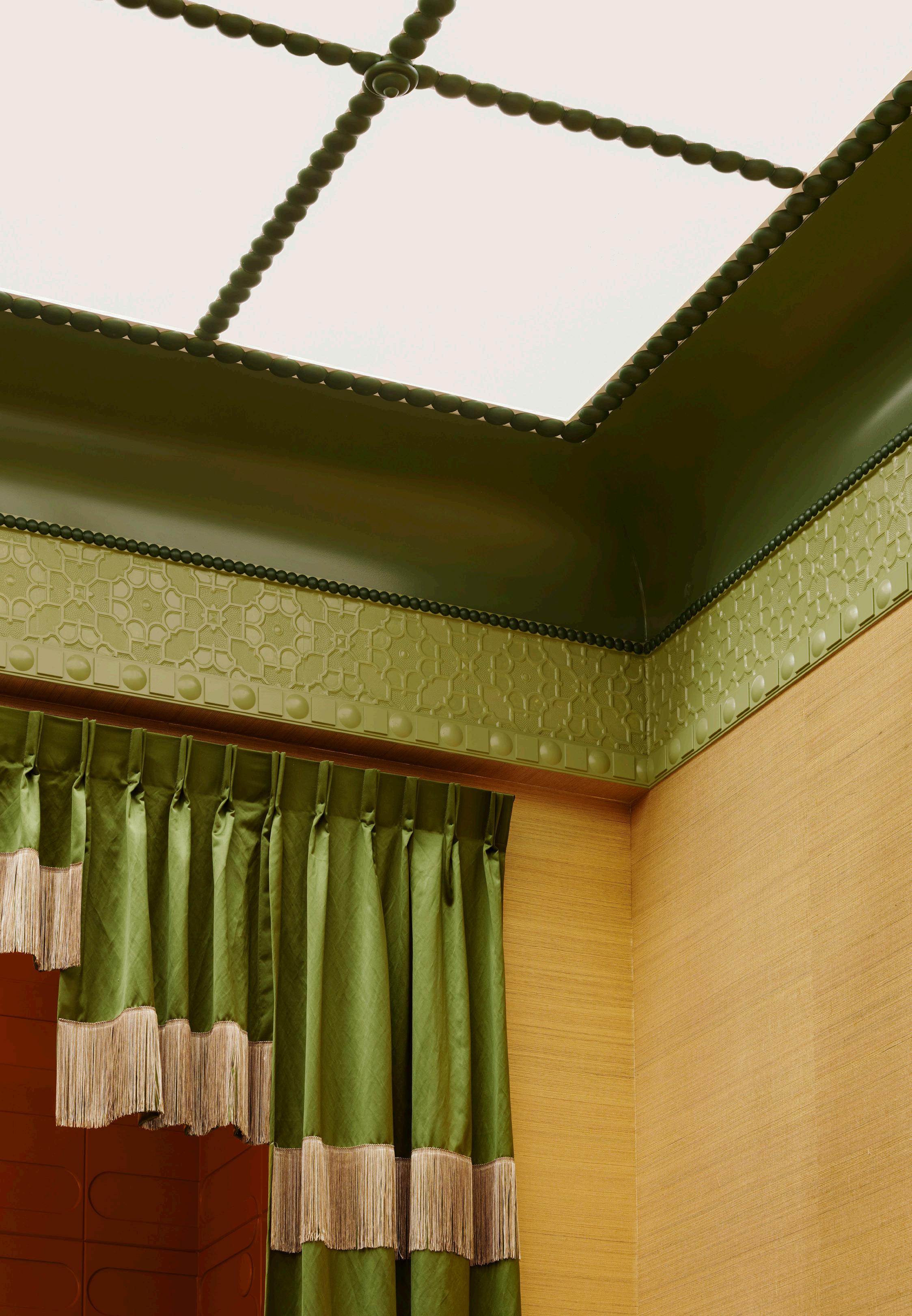 Horizontal lines also play a vital role in Art Deco. Particularly stepped profiles at the base of the wall or on ceilings, as they bring structure to a space and create a layered depth effect. High line skirting boards translate this principle for today’s interiors with clear, horizontal accents that subtly refer to that classic Art Deco design language. Higher up the wall, a single line at two-thirds height visually divides the room.