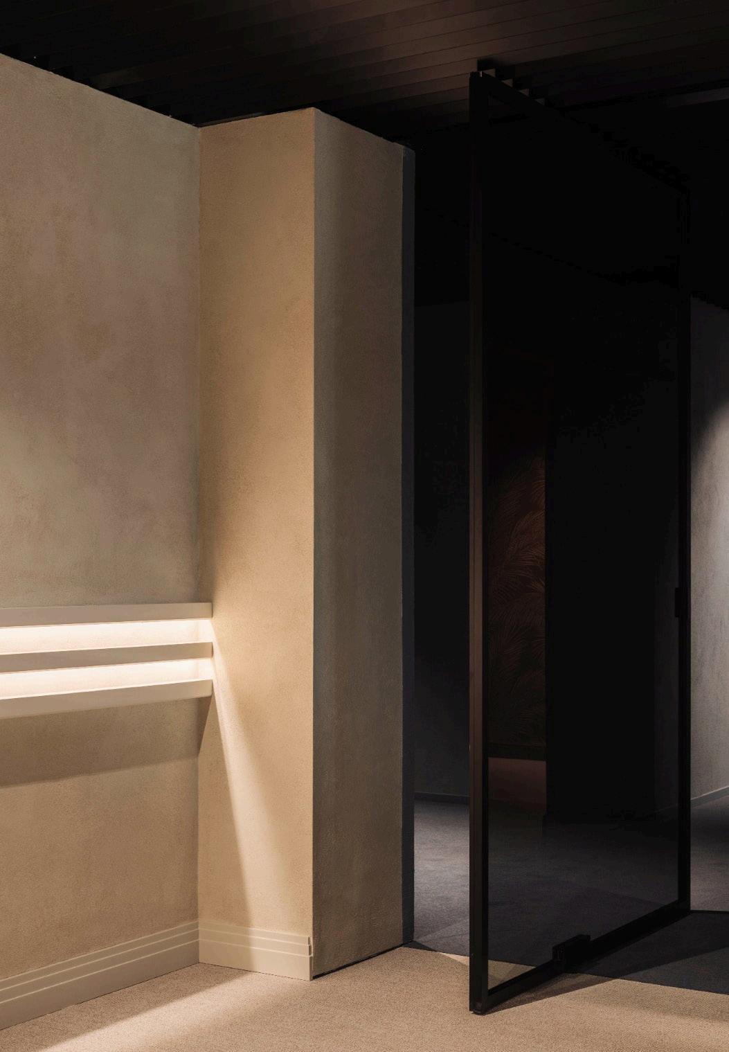 CZ Horizontální linie Horizontální linie hrají v Art Deco také zásadní roli. Zejména charakteristické stupňovité profily u paty stěny nebo u stropu vnášejí do prostoru strukturu a vytvářejí efekt vrstvené hloubky. Podlahové lišty High Line převádějí tento princip do dnešních interiérů s jasnými horizontálními akcenty, které jemně odkazují na klasický designový jazyk Art Deco. Výše na stěně pak místnost vizuálně rozděluje jediná linie ve výšce dvou třetin.