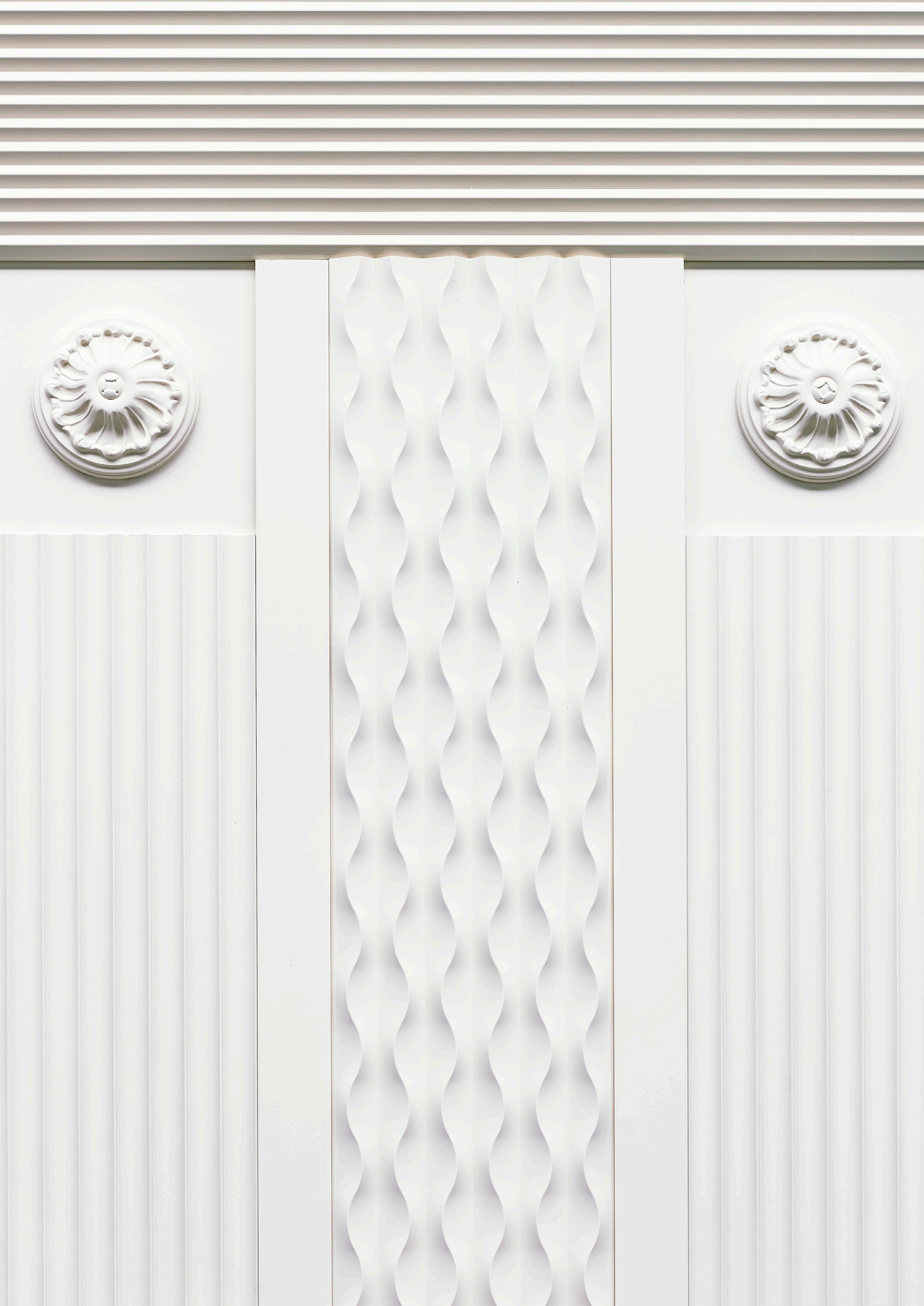 S 3D nástěnným panelem W212 Valley Loop vnesete toto zakřivení na stěnu. Stropní lišta Infinity nabízí jemné zaoblení, které plynule propojuje stěnu a strop. Společně s P9900 to vytváří výrazný rukopis Art Deco.