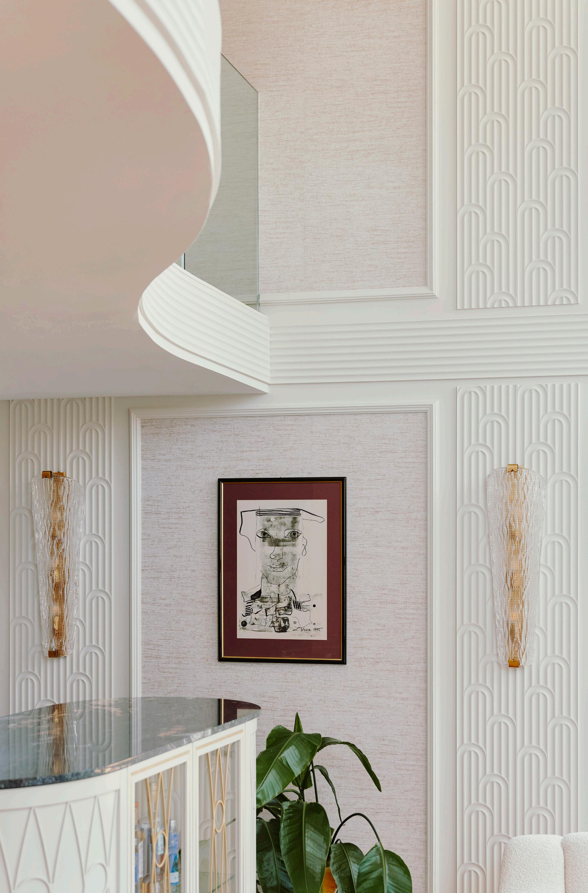 With the W212 Valley Loop 3D wall panel, you bring that curvature to the wall. The Infinity cornices add a gentle arc that seamlessly blends wall and ceiling. Together with P9900, this creates a distinct Art Deco signature.