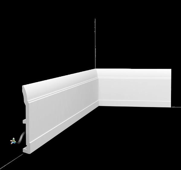 Nasza kolekcja Square doskonale do tego pasuje. Umieszczając listwy przypodłogowe pionowo lub w kształcie litery L, tworzy się na ścianie charakterystyczny rytm, który nadaje kierunek, nie dominując jednak nad pomieszczeniem.
