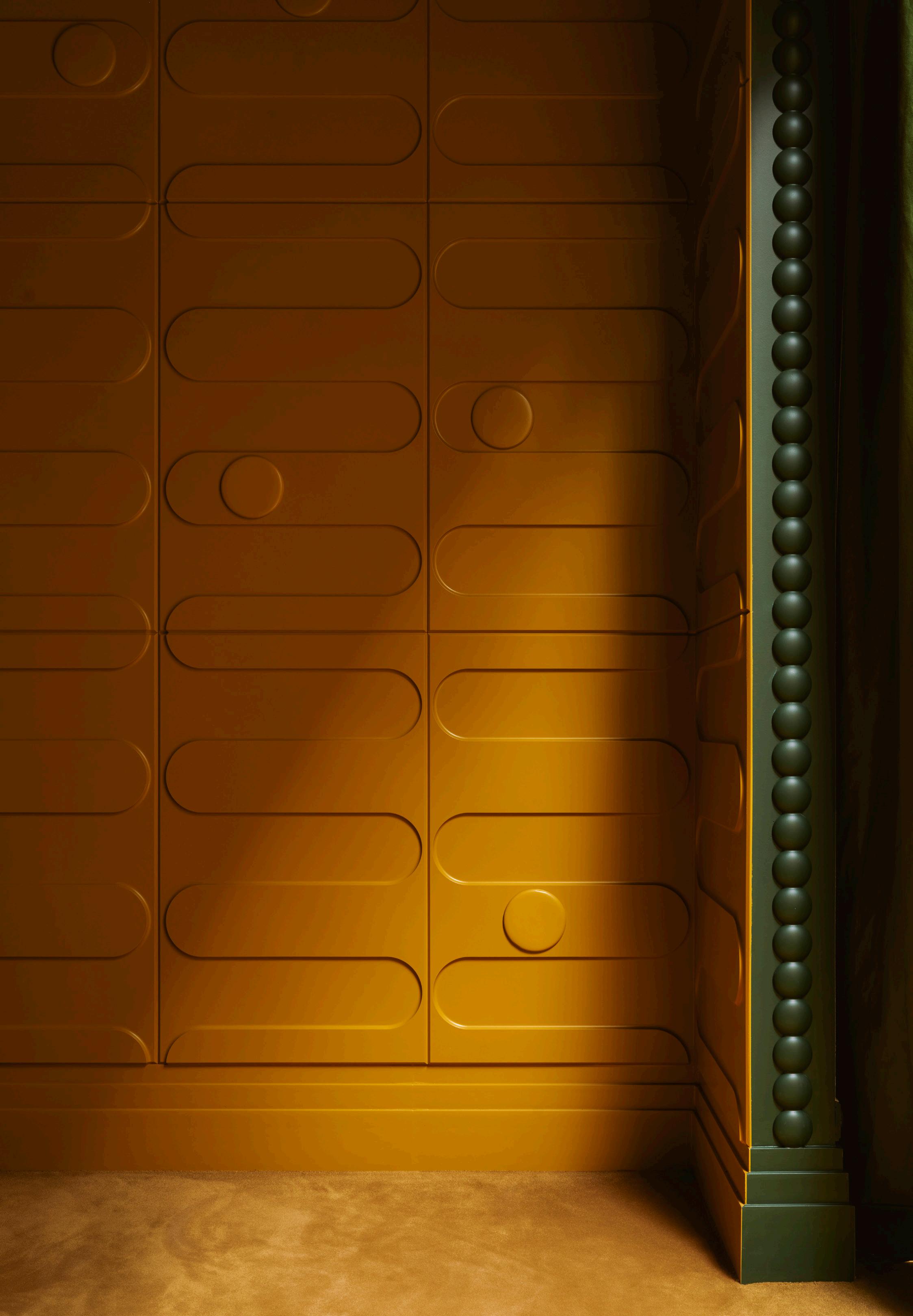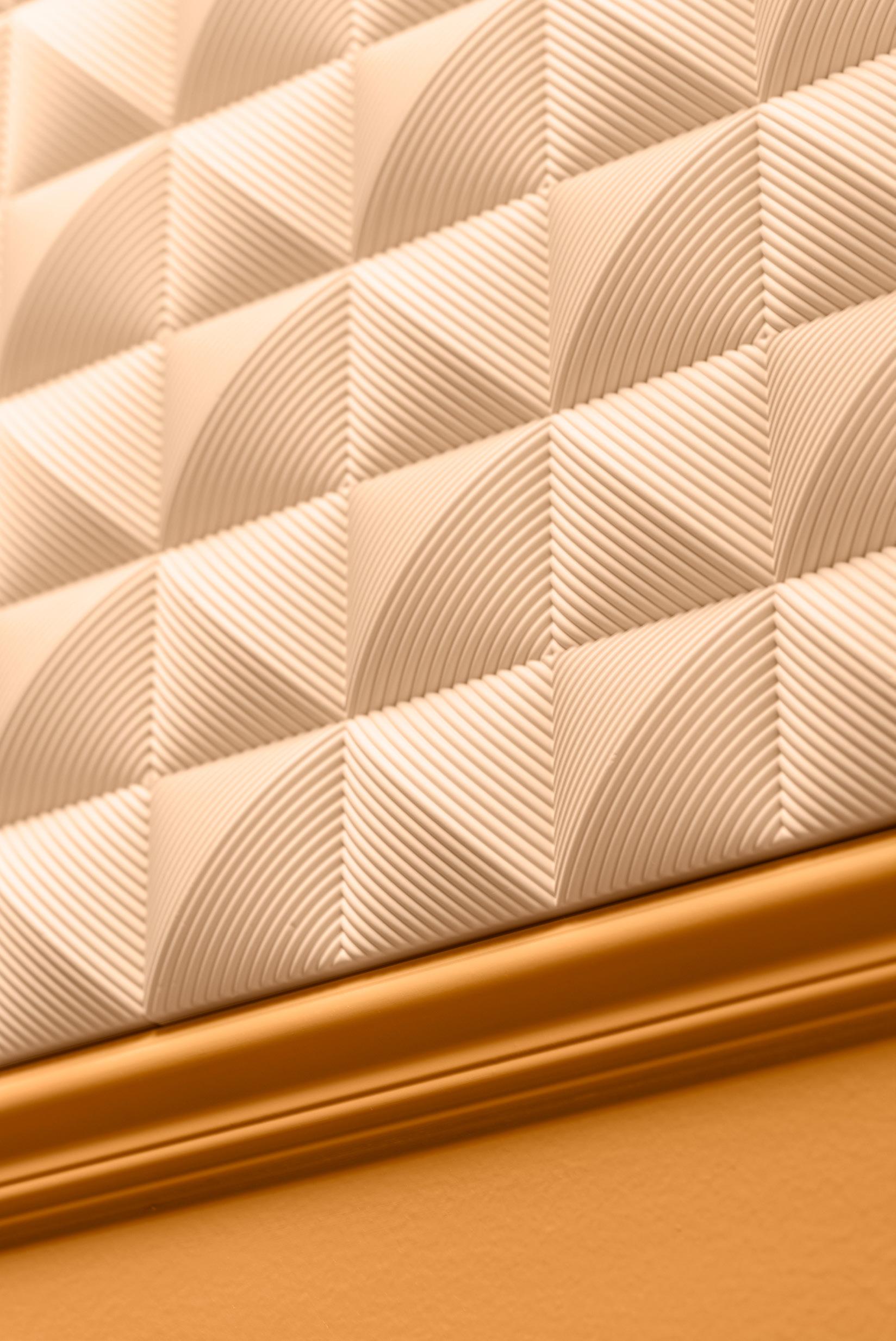 With the W212 Valley Loop 3D wall panel, you bring that curvature to the wall. The Infinity cornices add a gentle arc that seamlessly blends wall and ceiling. Together with P9900, this creates a distinct Art Deco signature.