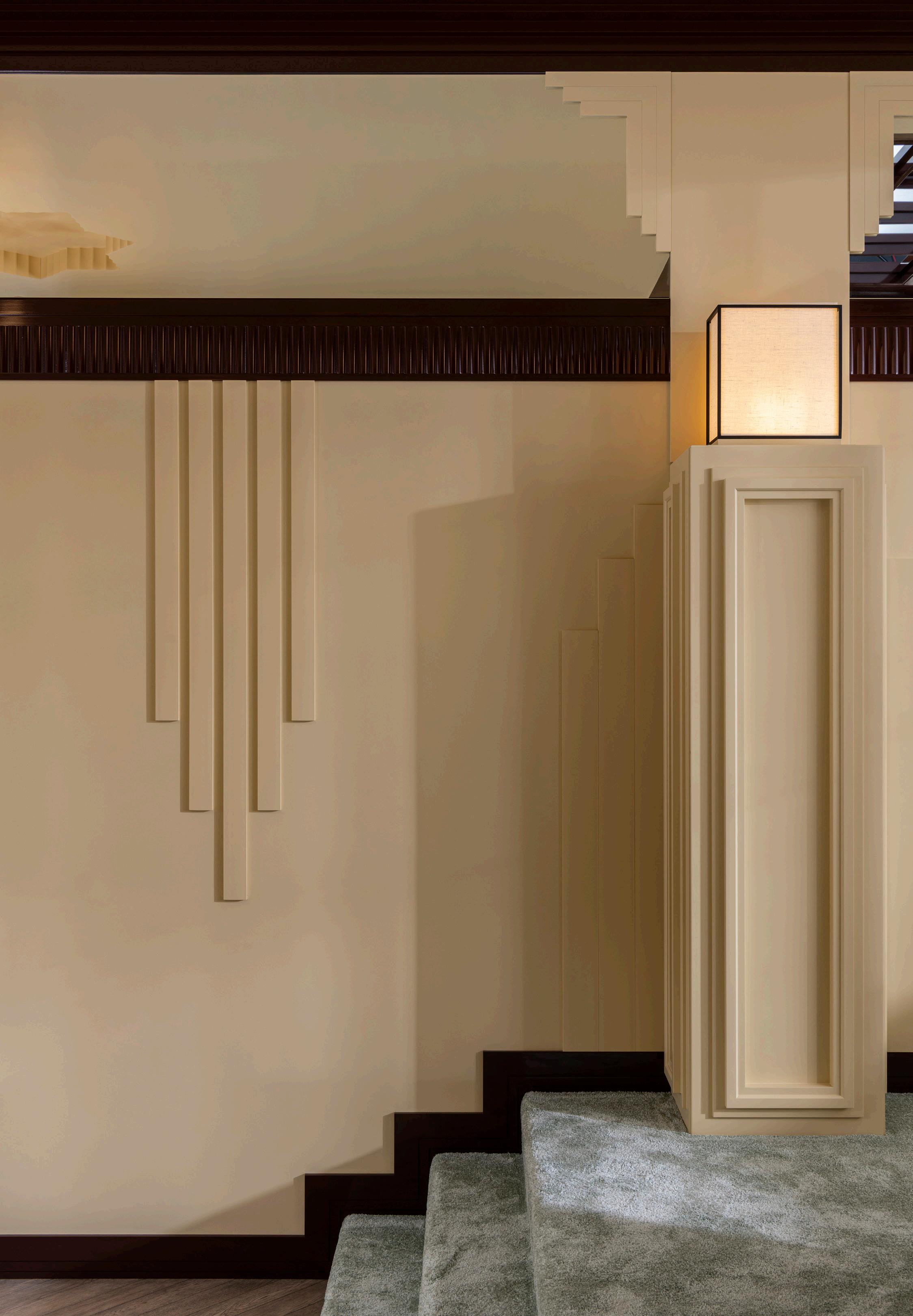 vertikālās līnijas. Šī dizaina valoda atsaucas uz maiju tempļu, ēģiptiešu piramīdu un klasiskās arhitektūras monumentalitāti, kuras vienojošais elements ir ritms, simetrija un augšupvērsta kustība. Tā ir izteiksmīga zīme, kas, neskatoties uz vietējām variācijām, joprojām ir atpazīstama visā pasaulē. Tādējādi Art Deco izveidojās kā tilts starp vēsturi un nākotni, ornamentiku un vienkāršību. Šī mijiedarbība nosaka arī mūsu pieeju dizainam. Arhitektūras elementi, kas ne tikai apdara sienas, bet arī piešķir tām virzienu un ritmu. Tieši tas padara šo stilu tik piemērotu mūsdienu interjeriem: tas atstāj telpu interpretācijai, nezaudējot savu identitāti.