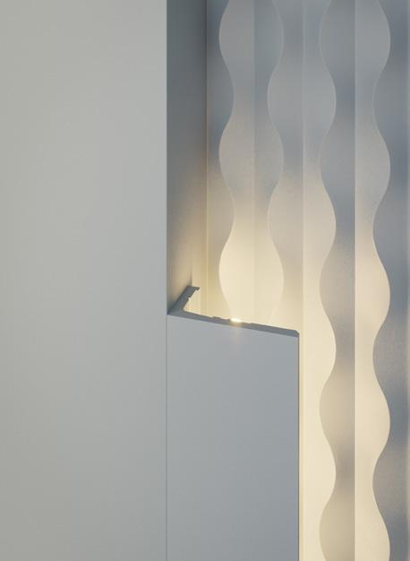 Profil minimalist, aplicat continuu suprafață a peretelui, oferă un finisaj unitar și modern.