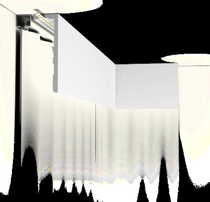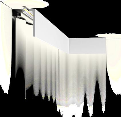 3. Perfil para cortinas Coloque o trilho da cortina atrás do perfil leve para um aspeto contínuo e elegante. Oculta elementos indesejados e imperfeições do teto, criando um acabamento limpo e sofisticado.