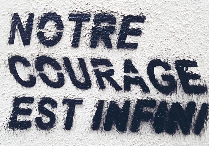 31ARKUCHI #31 OCT. | NOV. 2022 À LA MOULINETTE PAR EMMANUELLE BABE SES TRAITS D’ESPRIT DEVIENNENT POCHOIRS SUR LES MURS DES VILLES POUR ÉTONNER ET AMUSER LE QUIDAM. EN ATTENDANT DE RAVIR PEINTURE FRAICHE, LA DACTYLO NOUS LIVRE QUELQUES SECRETS DE FABRICATION. PEINTURE FRAICHE 12 OCT. > 6 NOV. peinturefraichefestival.fr DÉMO D’ESPRIT, APHORISMES & AUTRES PRISMES Éditions Verticales (13 oct.) ladactylo COMMENT VOUS VIENNENT VOS APHORISMES ? TRÈS SOUVENT, ILS ME VIENNENT NATURELLEMENT. ET PARFOIS JE DOIS LES CHERCHER DANS LES HAUTES HERBES DES CHAMPS LEXICAUX. LES MOTS CHANGENT‑ILS LA VIE ? ILS PEUVENT SURTOUT EN CHANGER LE SENS. QUELS MOTS VOUS SUBJUGUENT ? CEUX QUE JE DÉCOUVRE. LA LANGUE FRANÇAISE EST UN PUITS SANS FOND. HEUREUSEMENT, JE N'AI PAS LE VERTIGE. UN OBJET DONT VOUS NE VOUS SÉPAREZ JAMAIS ? J'APPORTE UNE VALEUR SENTIMENTALE À CERTAINS OBJETS, COMME MES BAGUES. SURTOUT CELLE QUI APPARTENAIT À MA GRAND‑MÈRE. CE SONT DES TALISMANS, DES PORTE‑BONHEURS. STREET ARTISTE OU ARTISTE ? ARTISTE. JE N'AIME PAS QU'ON M'ENFERME DANS UNE CASE. ÇA LIMITE LA CRÉATIVITÉ. VOUS AVEZ DÉJÀ EU AFFAIRE À LA POLICE ? OUI, À PLUSIEURS REPRISES. MAIS EN GÉNÉRAL PAS VUE PAS PRISE !