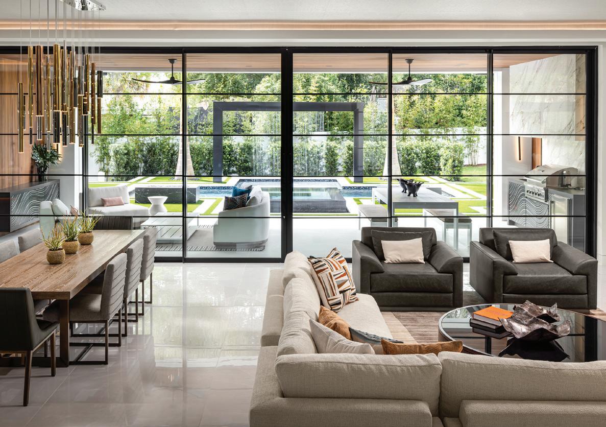 “Multi-point pendants are having a large impact on design today because we can combine many pendants to create the feeling of an aura of light within a volume of space. This concept is particularly suited to open two-story spaces or tall ceilings,” Annette says. Phil Kean Design Group also