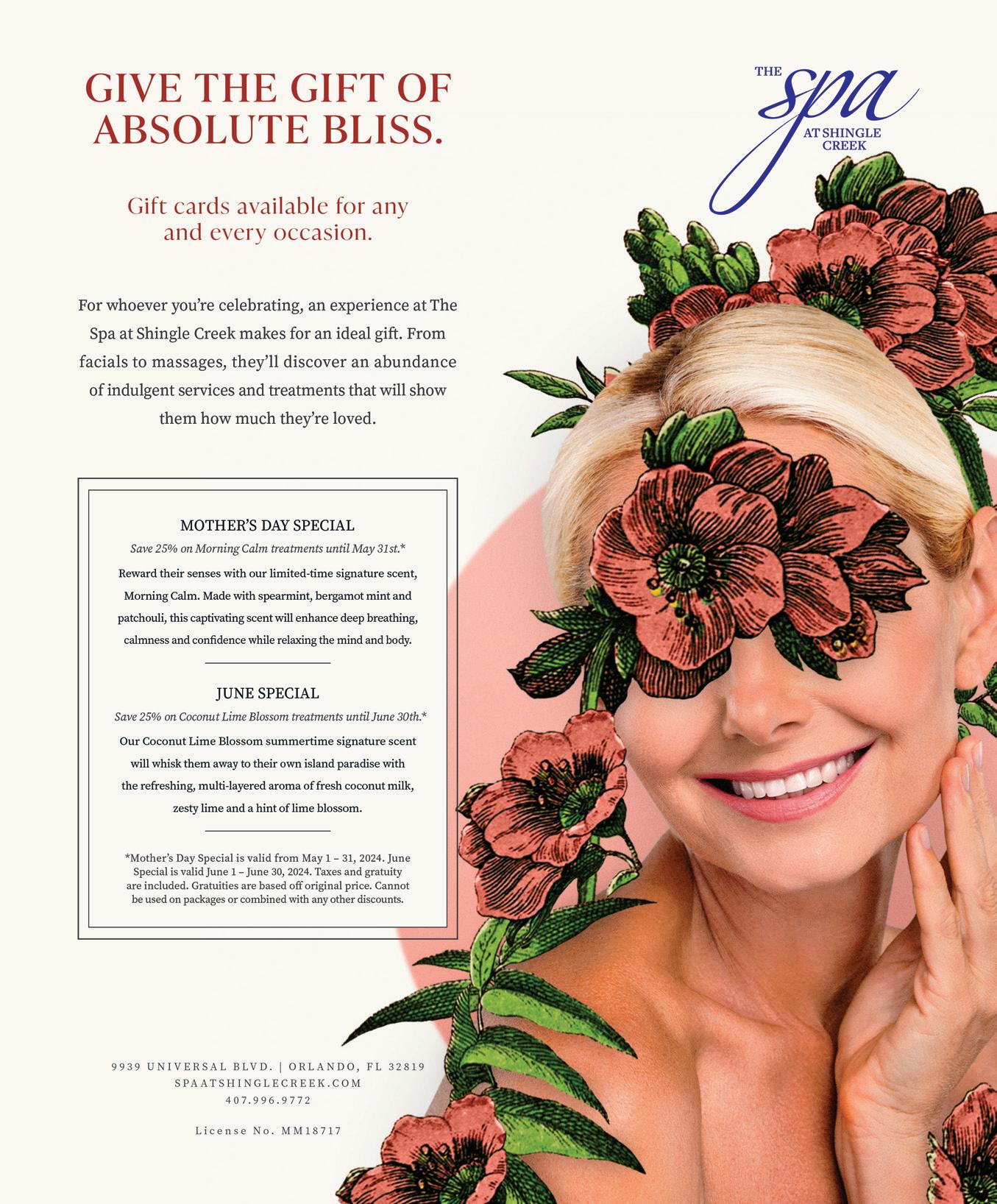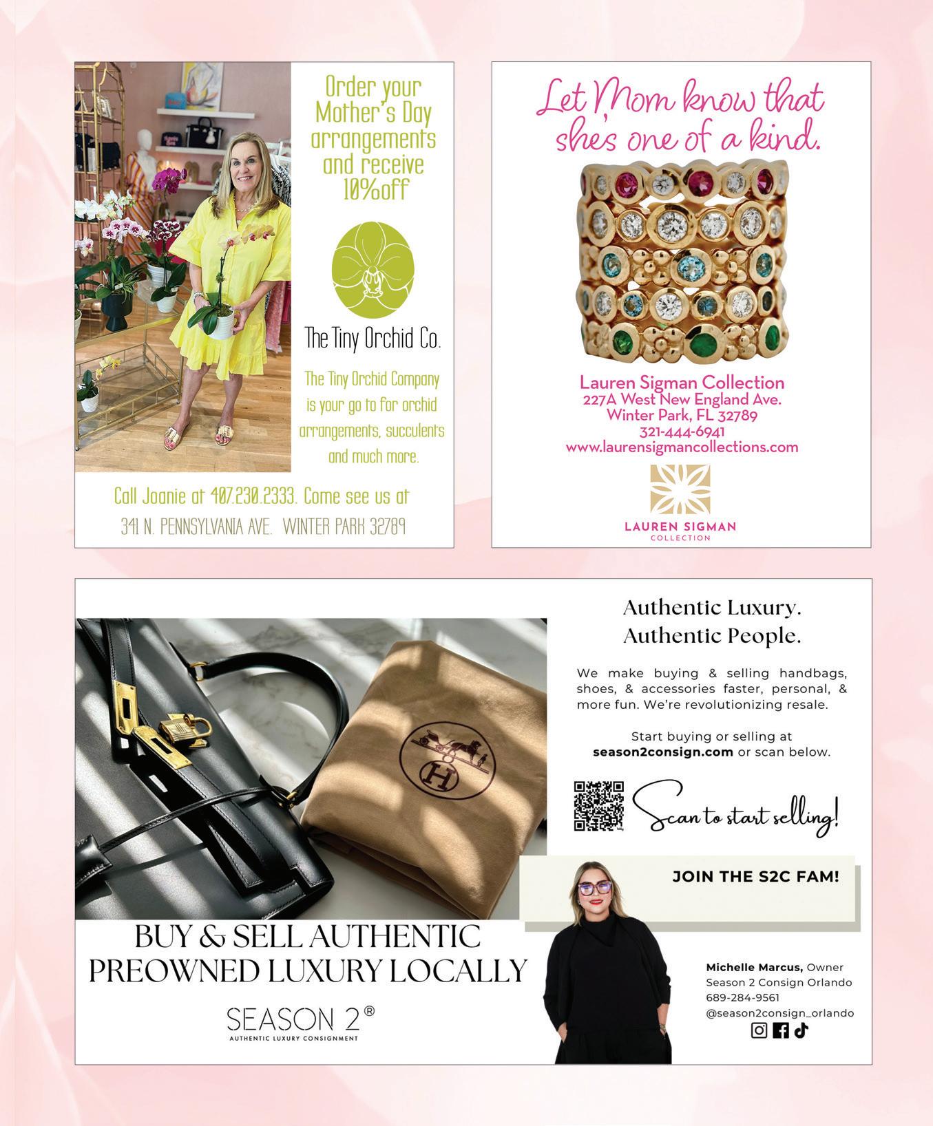 on the cover: Christi Ashby and Kate and Audrey Slentz photographed in front of Winter Park’s Casa Feliz with a pretty pink Moke, mokeamericaorlando.com. Details on page 68.