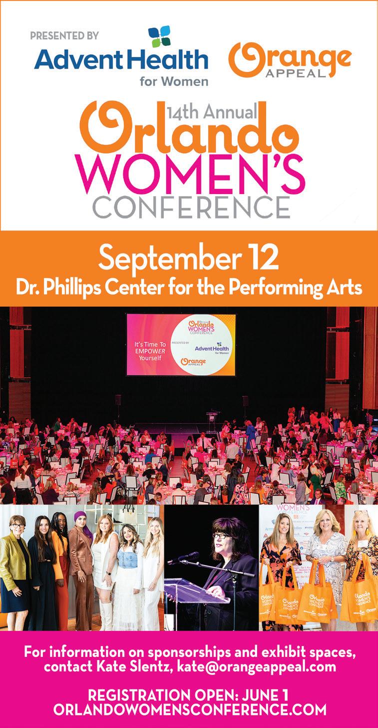 For updates and details, visit orlandowomensconference.com For sponsorship information email kate@orangeappeal.com