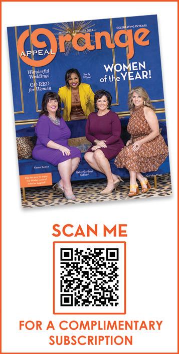 Orange Appeal makes a great gift any time! Subscribe at orangeappeal.com. Get all the event info by signing up for the e-newsletter or visiting our interactive website. For changes of address, or to cancel or renew your subscription, visit orangeappeall.com/subscribe-to-orange-appeal/. may | june 2024 columns 12 40 10 36 26 2 orangeappeal.com