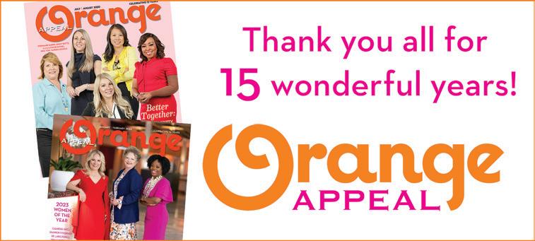 Orange Appeal makes a great gift any time! Subscribe at orangeappeal.com. Get all the event info by signing up for the e-newsletter or visiting our interactive website. For changes of address, or to cancel or renew your subscription, visit orangeappeall.com/subscribe-to-orange-appeal/. may | june 2023 columns 40 22 36 18 14