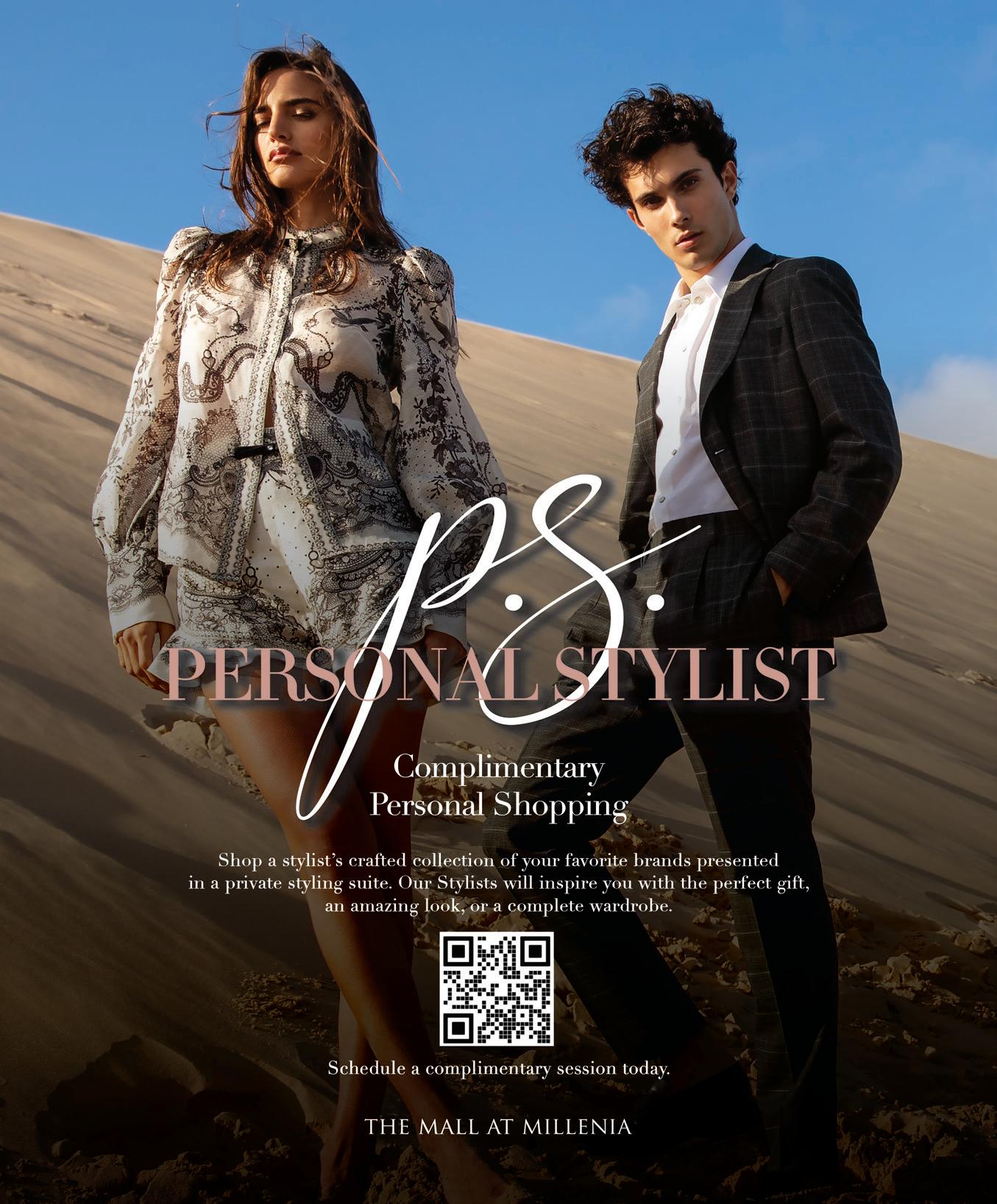 A complimentary personal styling session at The Mall at Millenia includes a one-on-one, 2-hour private shopping experience with a stylist’s crafted collection of items from your favorite brands presented in its private suite, with a minimum spend of $1,000. Visit mallatmillenia.com/with-our-compliments/personal-stylist/ to learn more or to book a style session.