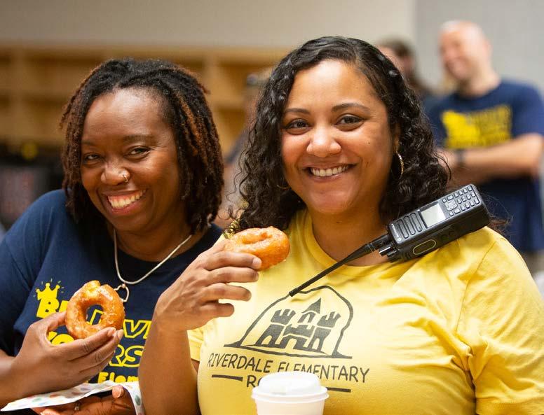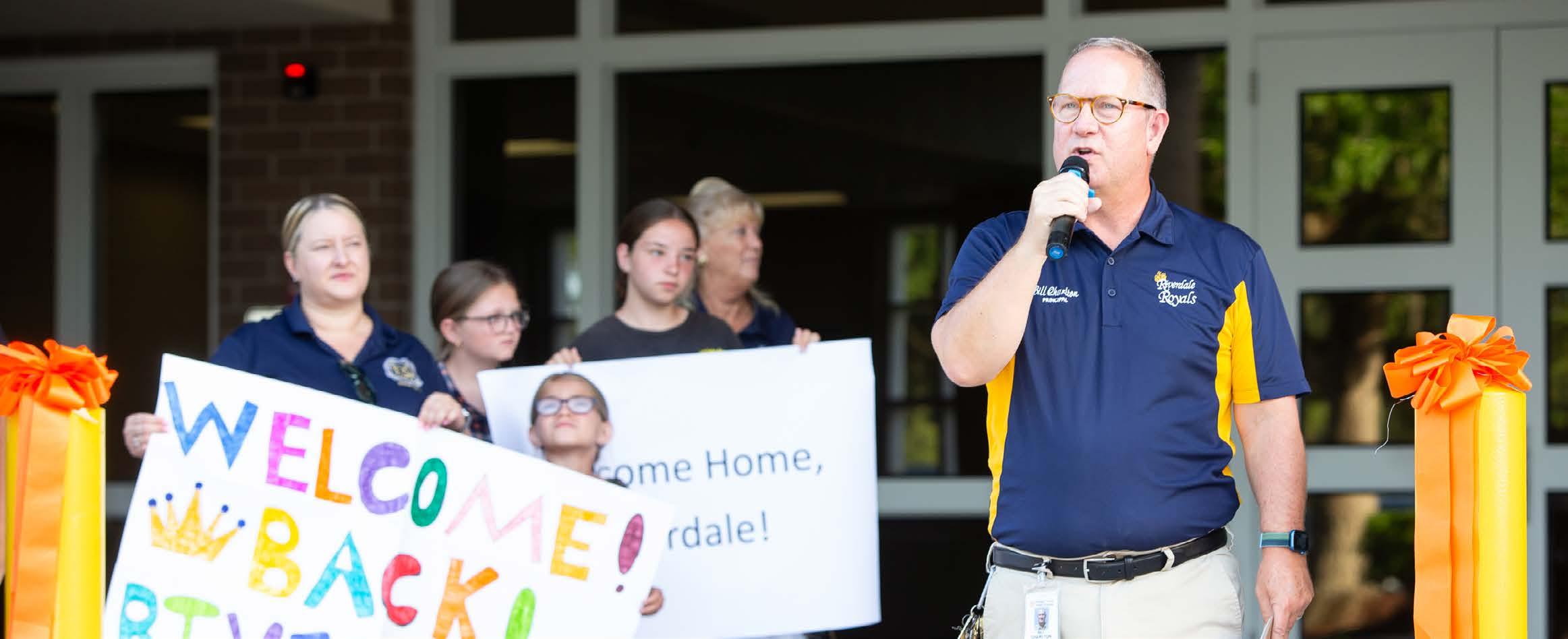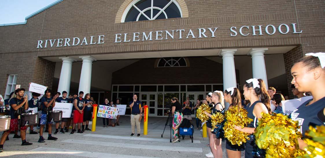 On July 26, Principal Charlton welcomed back his faculty to Riverdale Elementary for the first time in nearly a year, cutting a ribbon to commemorate the occasion. Greeted to the sounds of drum lines and cheerleaders, teachers were inspired by Charlton’s words of thankfulness for the fortitude they had shown the previous year and encouragement for the exciting school year that lay in front of them.