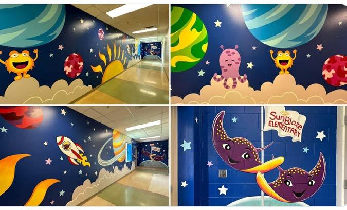 This post on X (formerly known as Twitter) was out of this world! Sun Blaze Elementary School recently showed off its newly painted, space-themed hallway leading students to the 4th and 5th grade classrooms! When students and teachers walk down the hall, it feels like they are walking through the solar system while being greeted by friendly aliens and rocket ships.